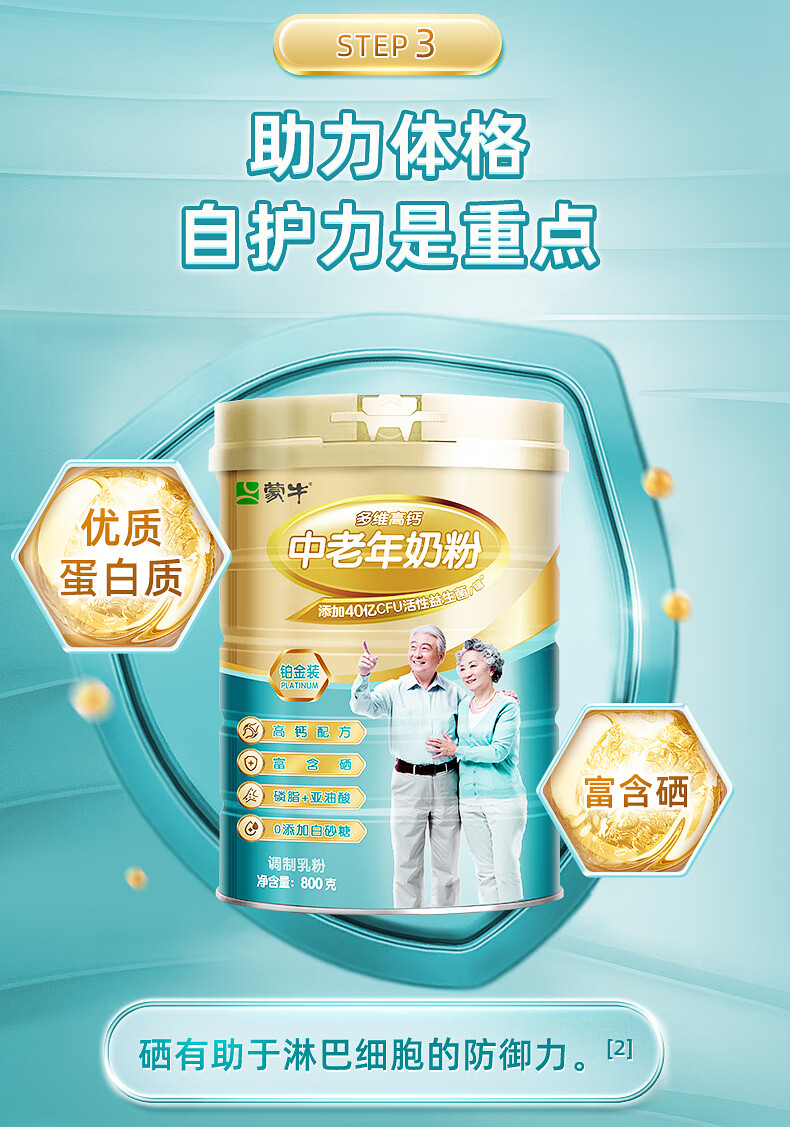 素儿美滋中老年无蔗糖富硒奶粉高补钙铁锌十联益生菌羊奶粉800g