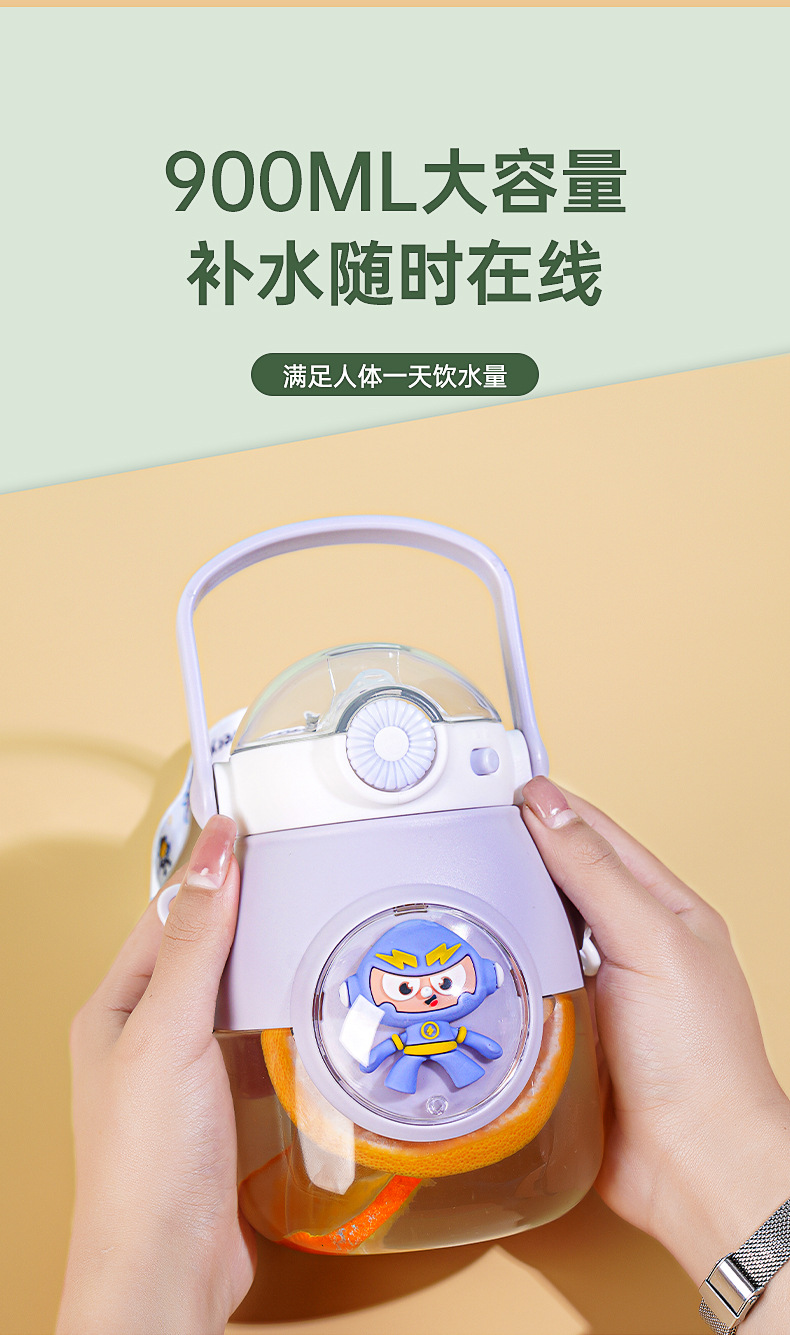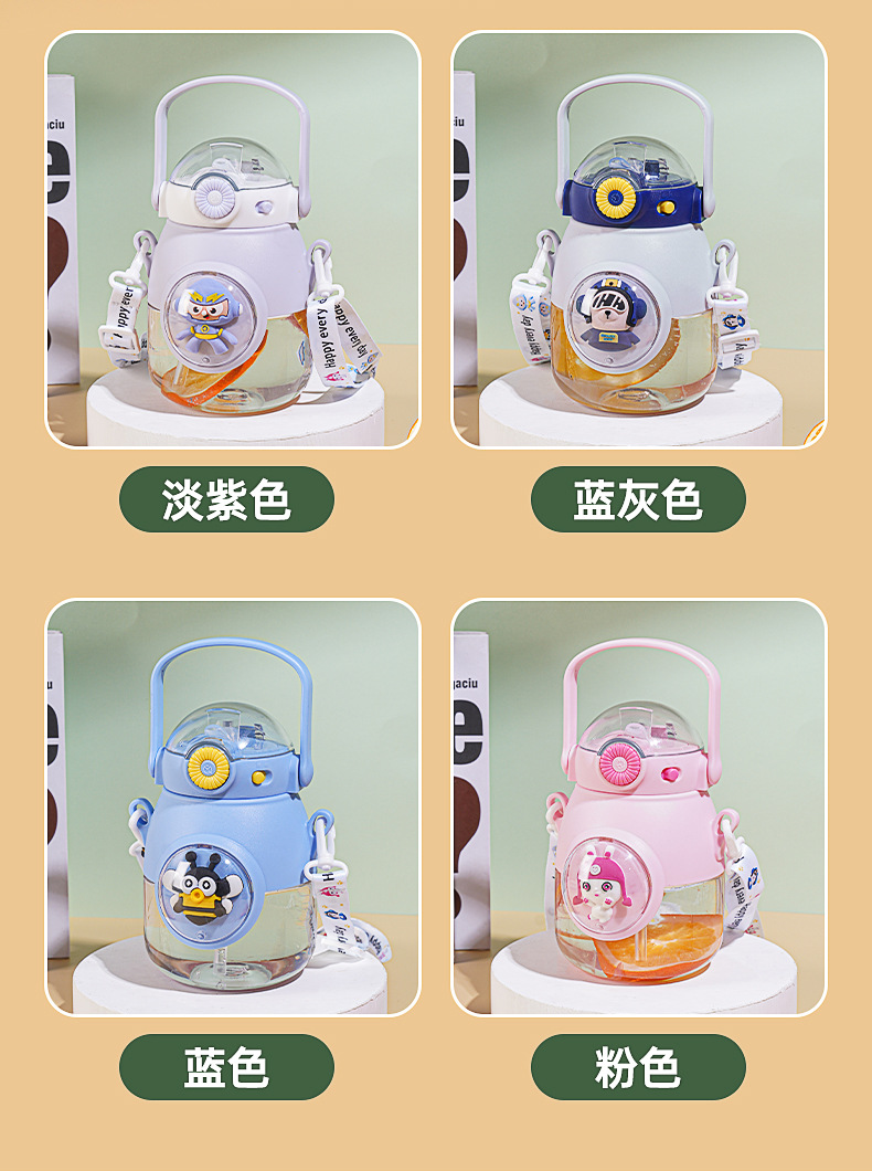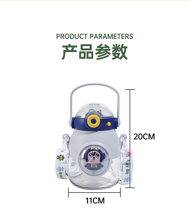 babycare恐龙冷萃杯儿童背带学饮杯霸王龙托比吸管水杯学生外出旅行大毫升500ml