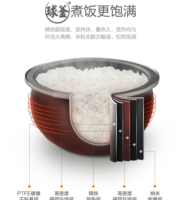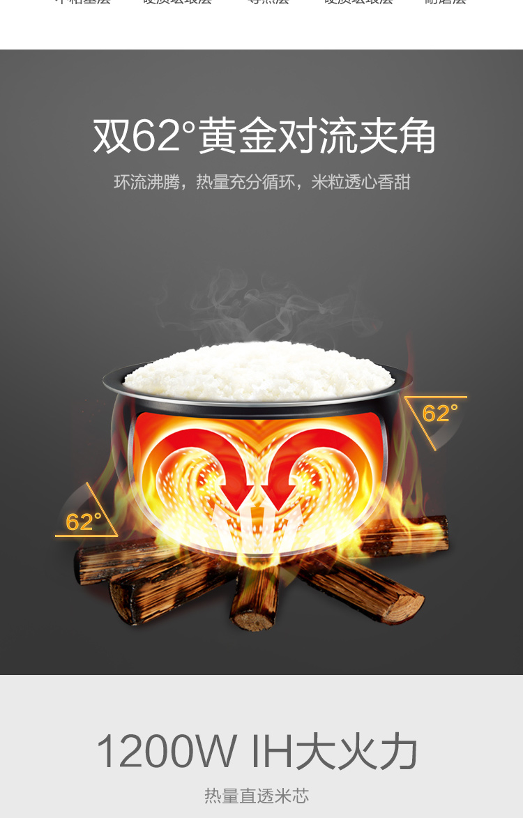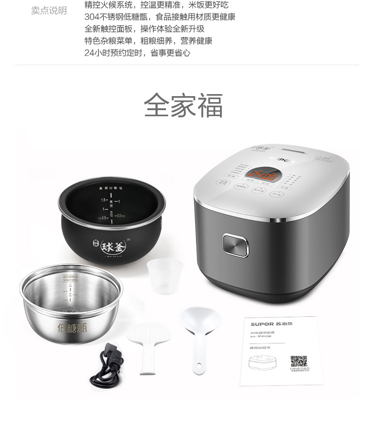 苏泊尔(SUPOR)电饭煲电饭锅IH电磁加热智能预约触摸操控精铁球釜内胆智能电饭煲SF40HC32