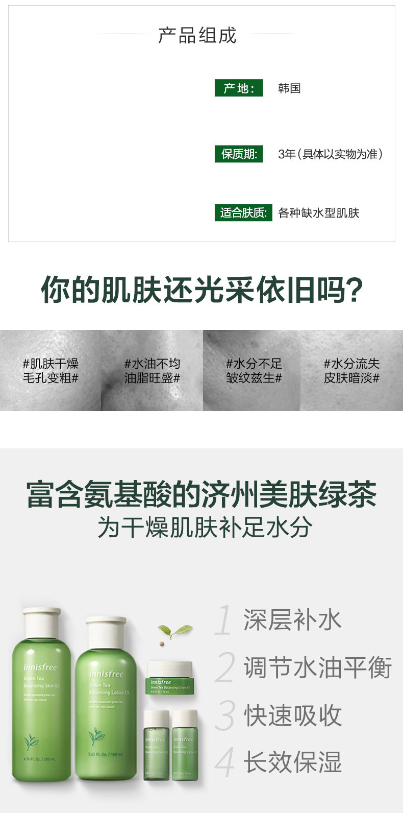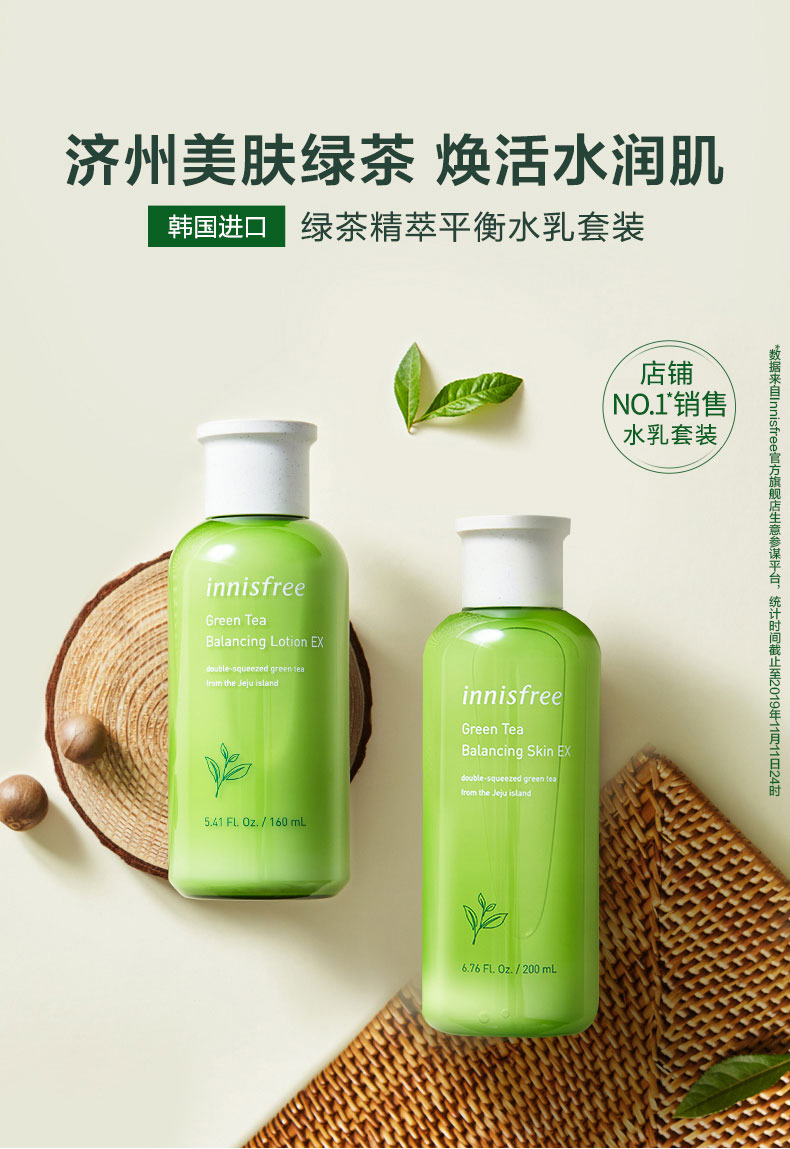 水分新世界!悦诗风吟绿茶精萃保湿平衡水乳套装,蕴含来自济州的美肤绿茶水,为干燥肌肤补充充足水分,帮助打造健康透润的水光肌;双重保湿锁水系统,帮助调节水油平衡的保湿平衡水乳套装!