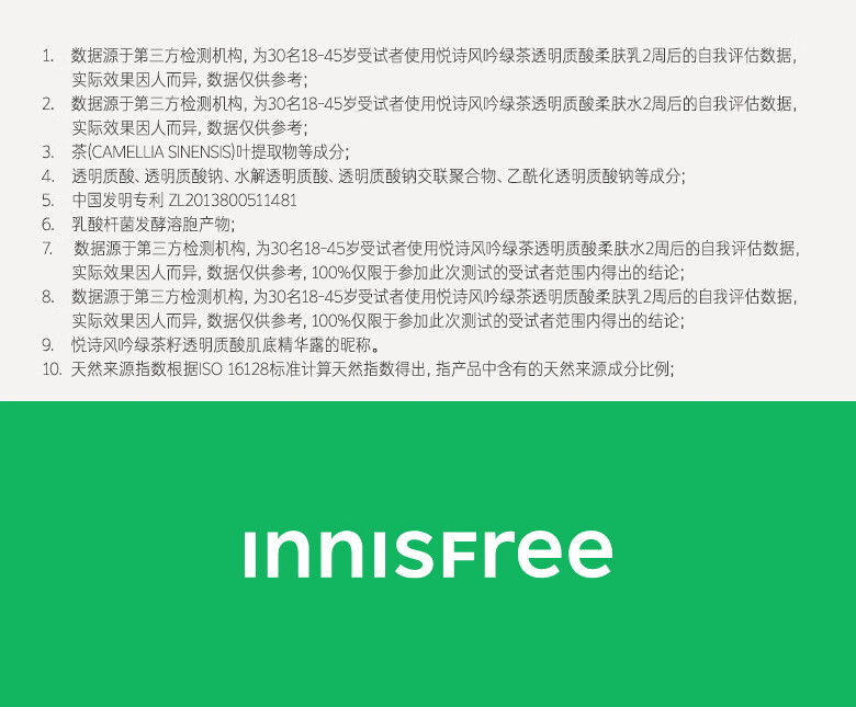 悦诗风吟(Innisfree)是韩国化妆品品牌,也是由韩国第一化妆品集团AmorePacific爱茉莉太平洋集团潜心研制的自然主义化妆品,是高科技和自然的结合。这一品牌的化妆品的特性:自然、健康、朴素。从推出第一支产品迄今,悦诗风吟一直坚持这些理念,并运用先进科技,不断对品牌进行提升,追求自然与肌肤的完美契合。