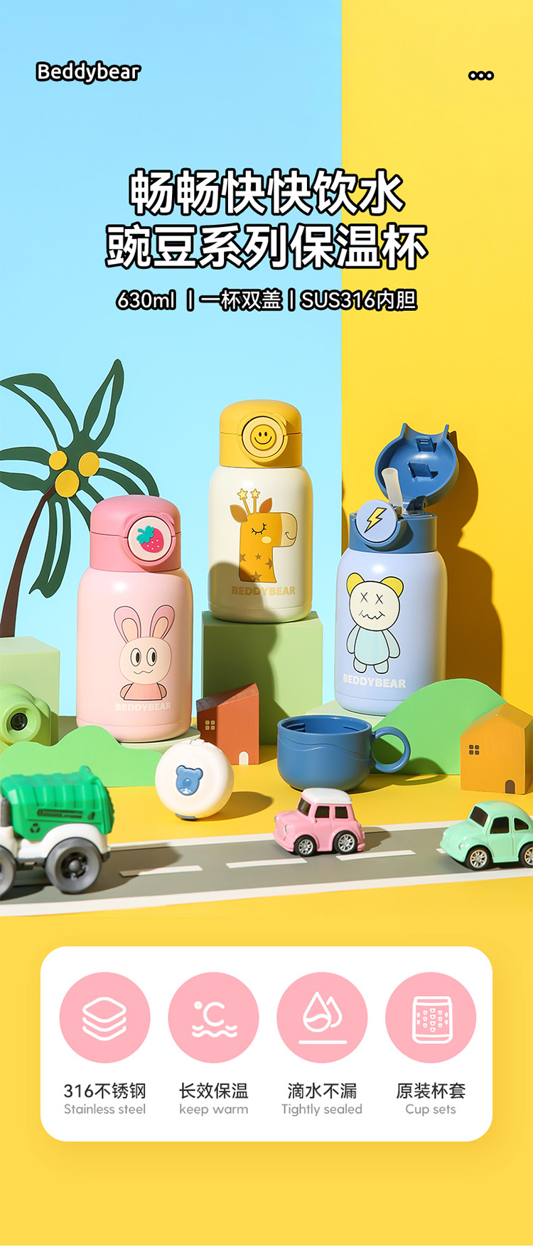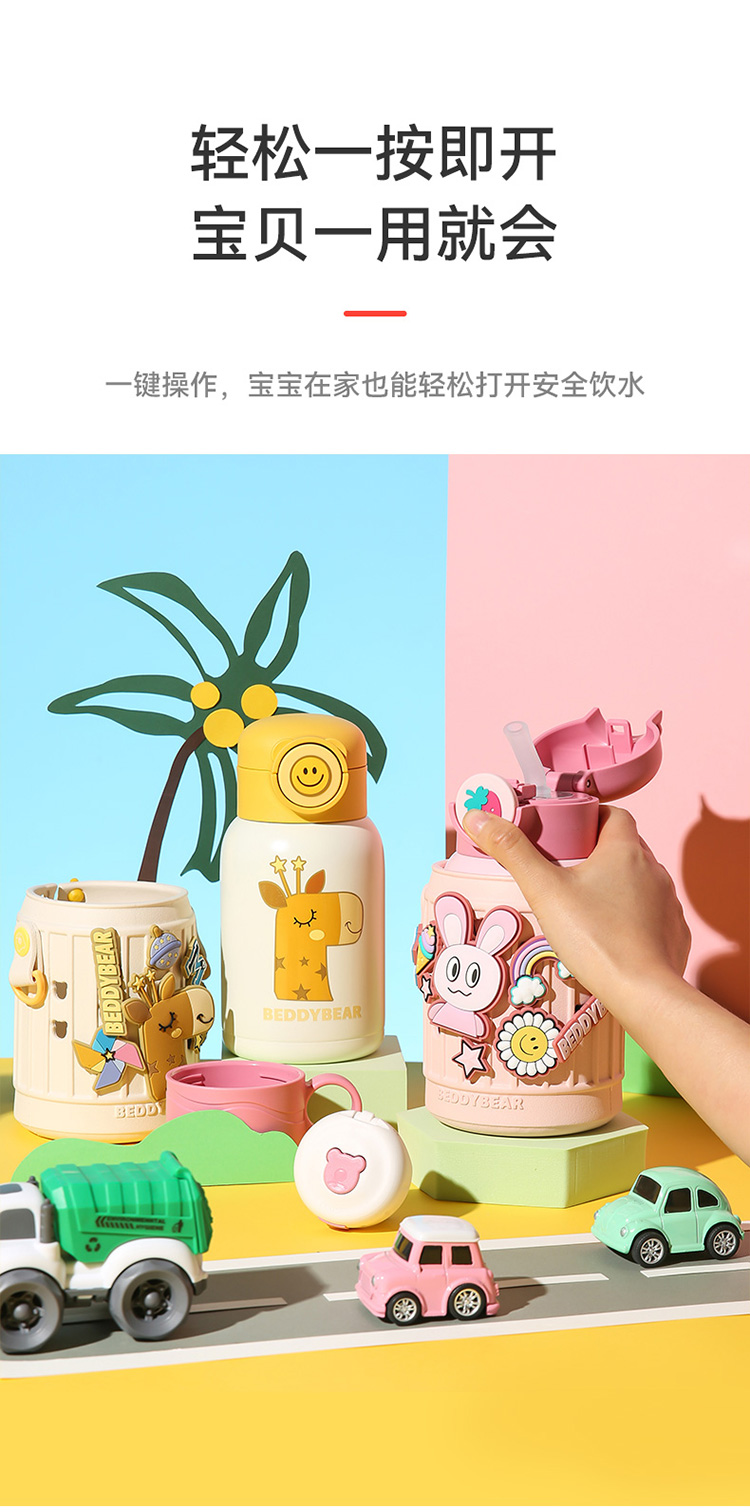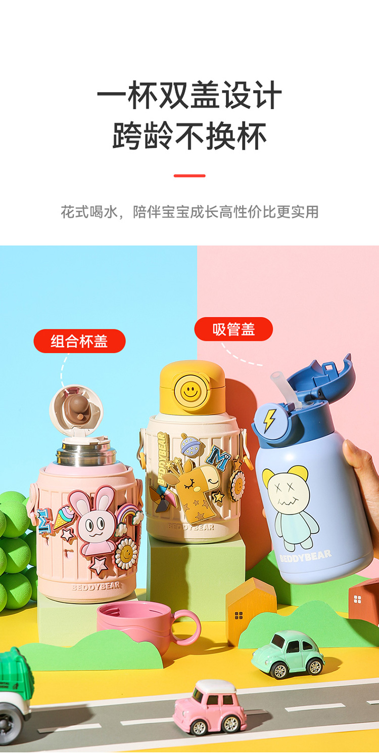 【送贴纸】奥特曼kitty猫儿童保温杯男孩316不锈钢食品级小学生水壶大容量吸管水杯600ml