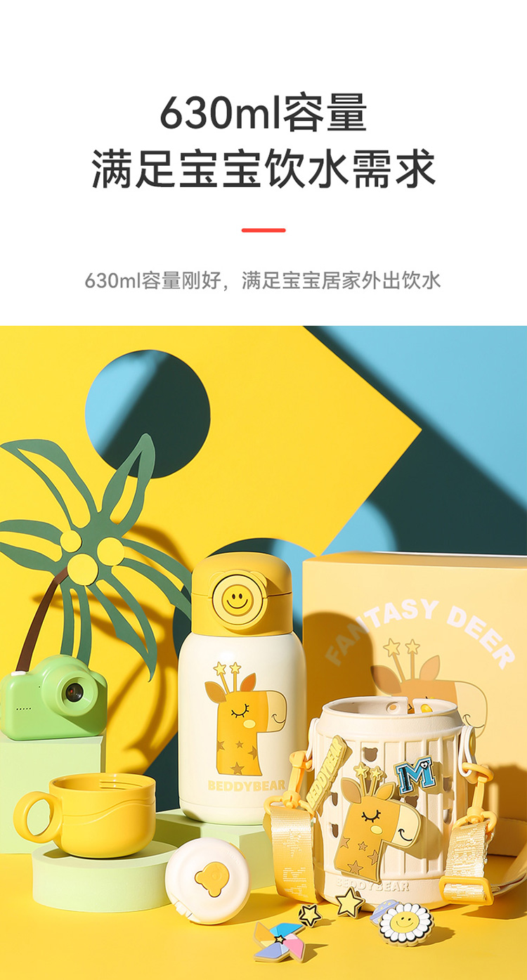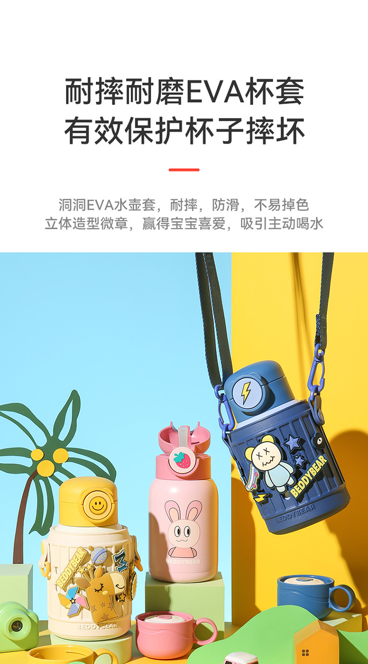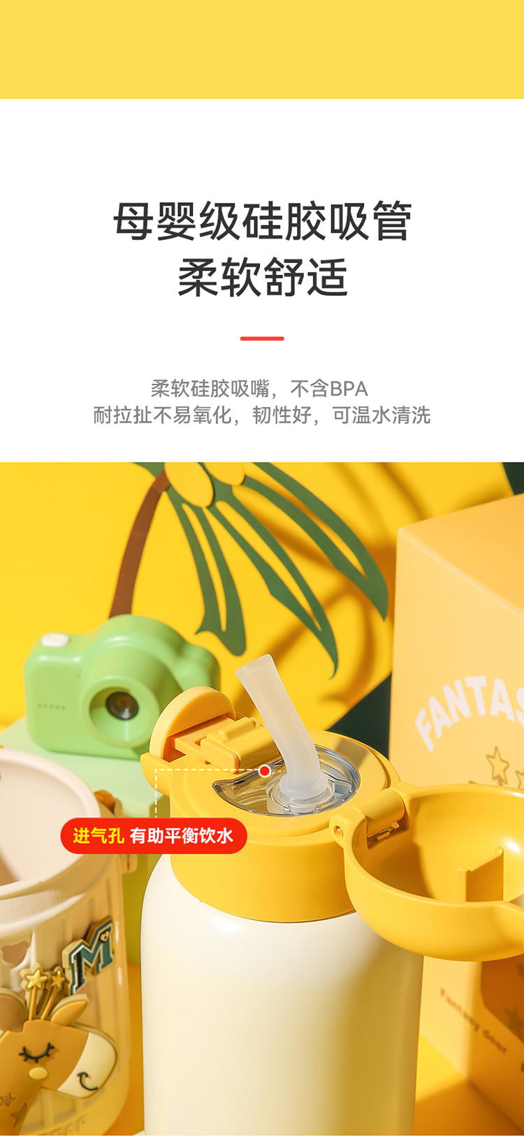 babycare恐龙冷萃杯儿童背带学饮杯霸王龙托比吸管水杯学生外出旅行大毫升500ml
