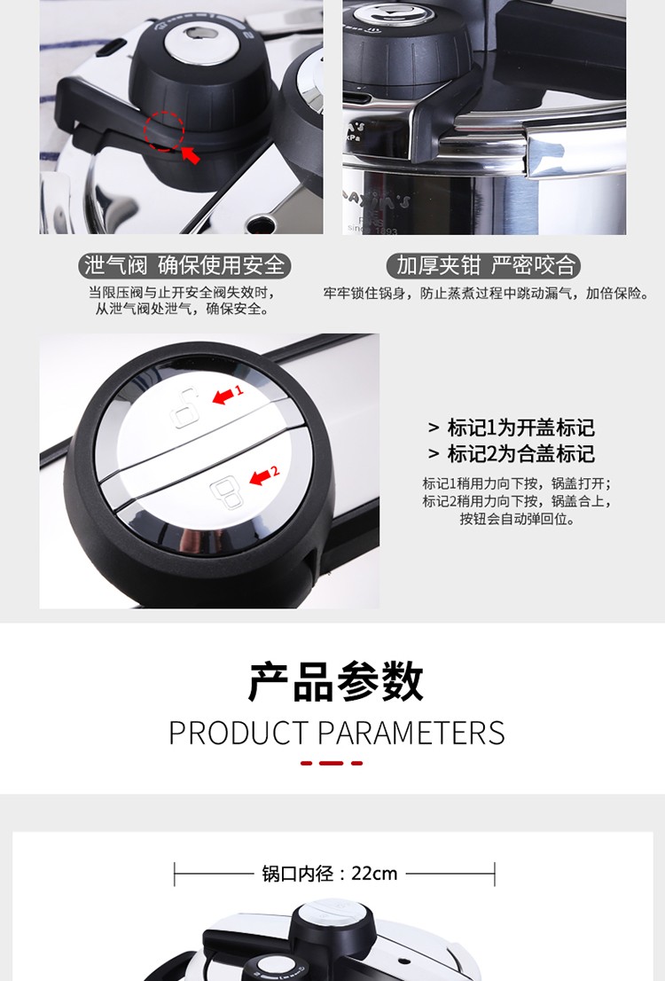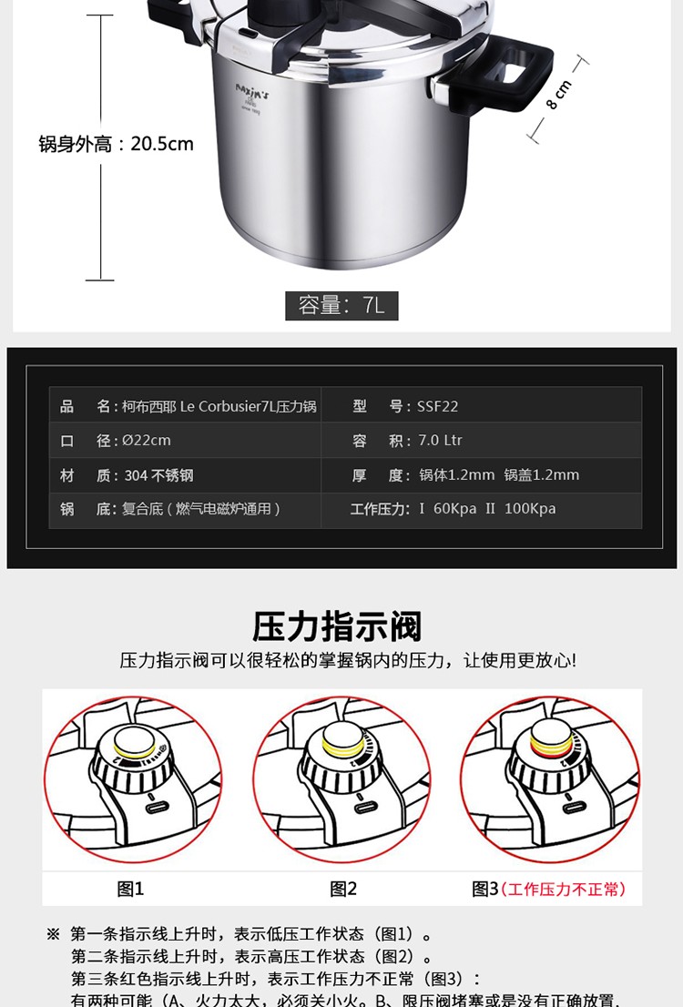 马克西姆 圣米歇尔Sant-Michel 7.5L不锈钢压力锅 SSF25