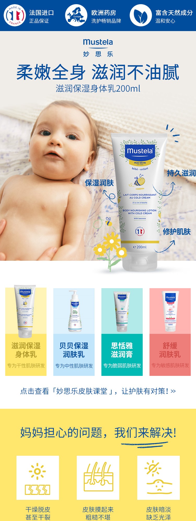 富含新一代亲肤活性成分,秋冬滋润保护衣,让宝宝全身柔滑不干燥;香味独特,在欧洲被誉为婴儿般的香味,有助于增进亲子关系,同时也为宝宝的身心健康提供专业的保证。