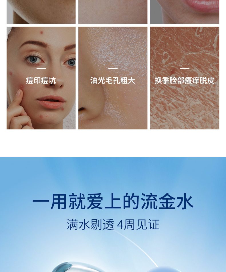 闭口满脸拉低颜值?油光满面不忍直视?是流金水出场的时候了!从甘草中提取精粹成分,汇聚成温润流动的液体,上脸有润物细无声的温和舒适感,在爆痘的季节为肌肤“下火”,连毛孔也更紧致