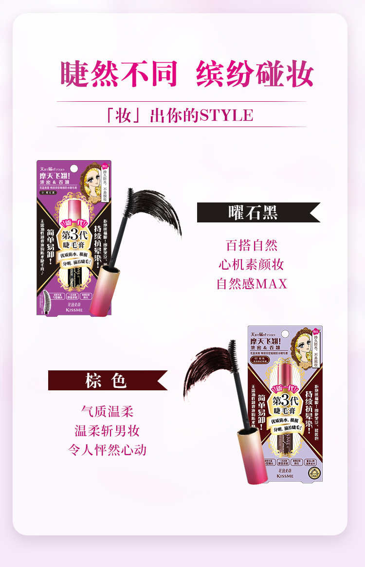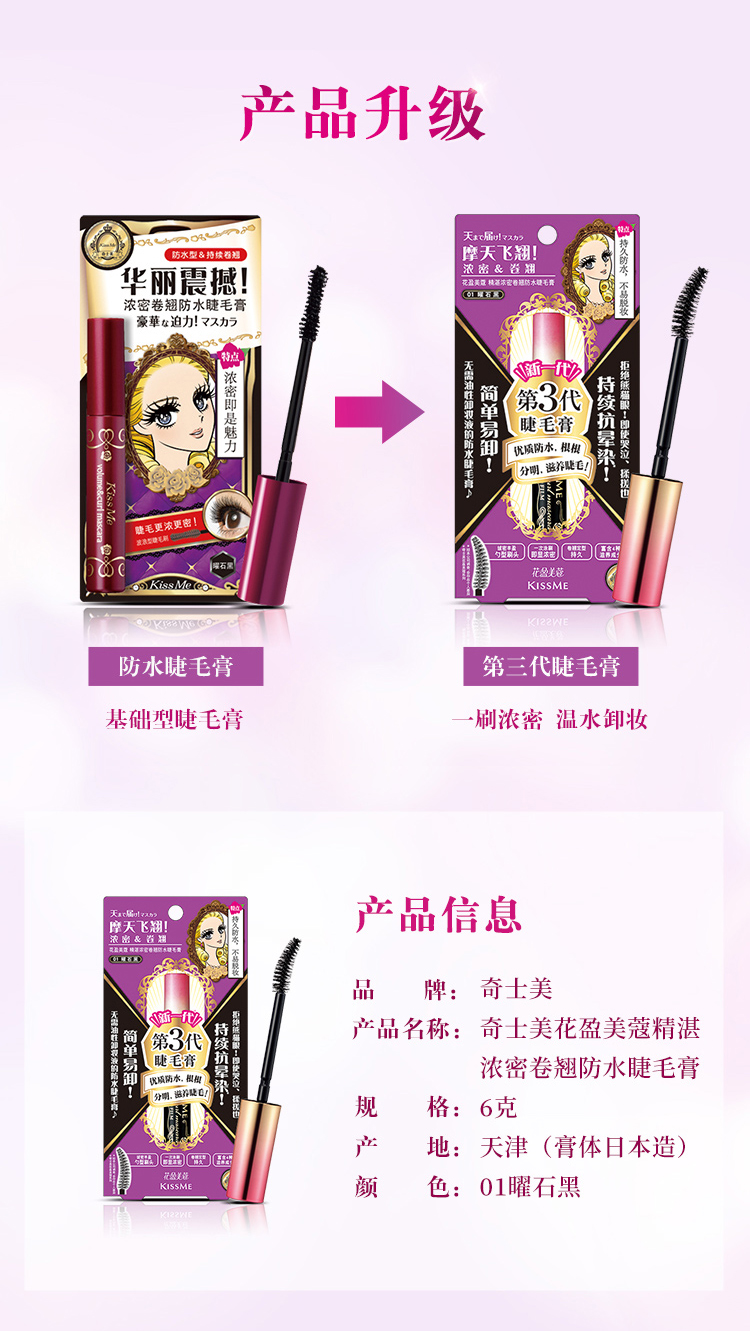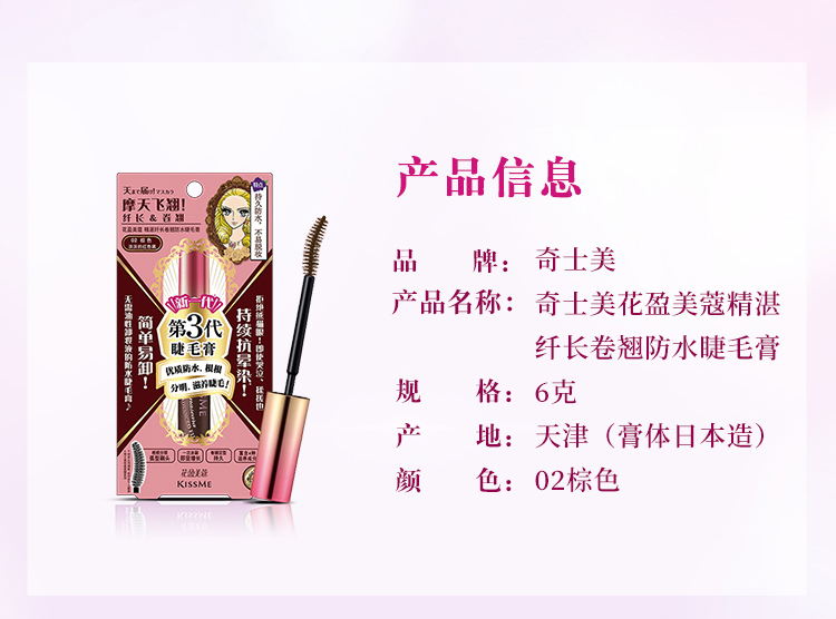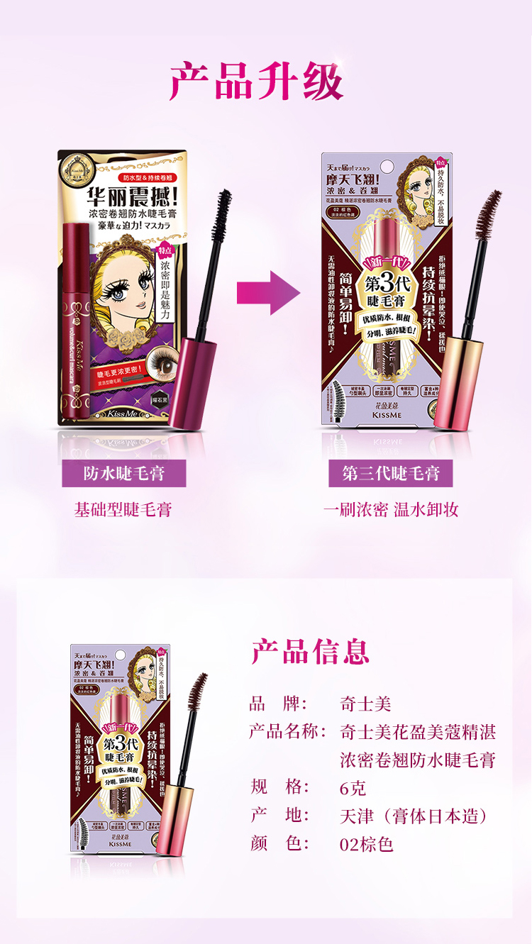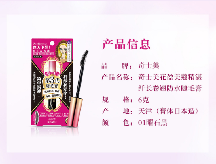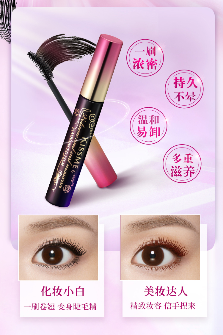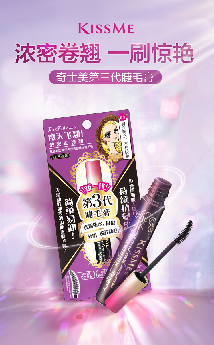 日本原裝進口KISSME化妝品,囊括多個彩妝與保養品系列 : 市占第一名全眼妝專家的KISSME「花漾美姬」系列、日本戀愛系底妝專家系列「Kiss」,及第一支以大人系全彩妝為主的「FERME」系列。保養品則有「KISSME奇士美」、「Vivant Joie畢凡娃」及「Puravida」等系列。採用高品質、有效的原料,堅持不添加香料等刺激成分,商品通過日本皮膚科醫師監督之貼布測試,敏弱肌也適用。滿足妳的美麗需求,共同締造妳的美麗奇蹟。