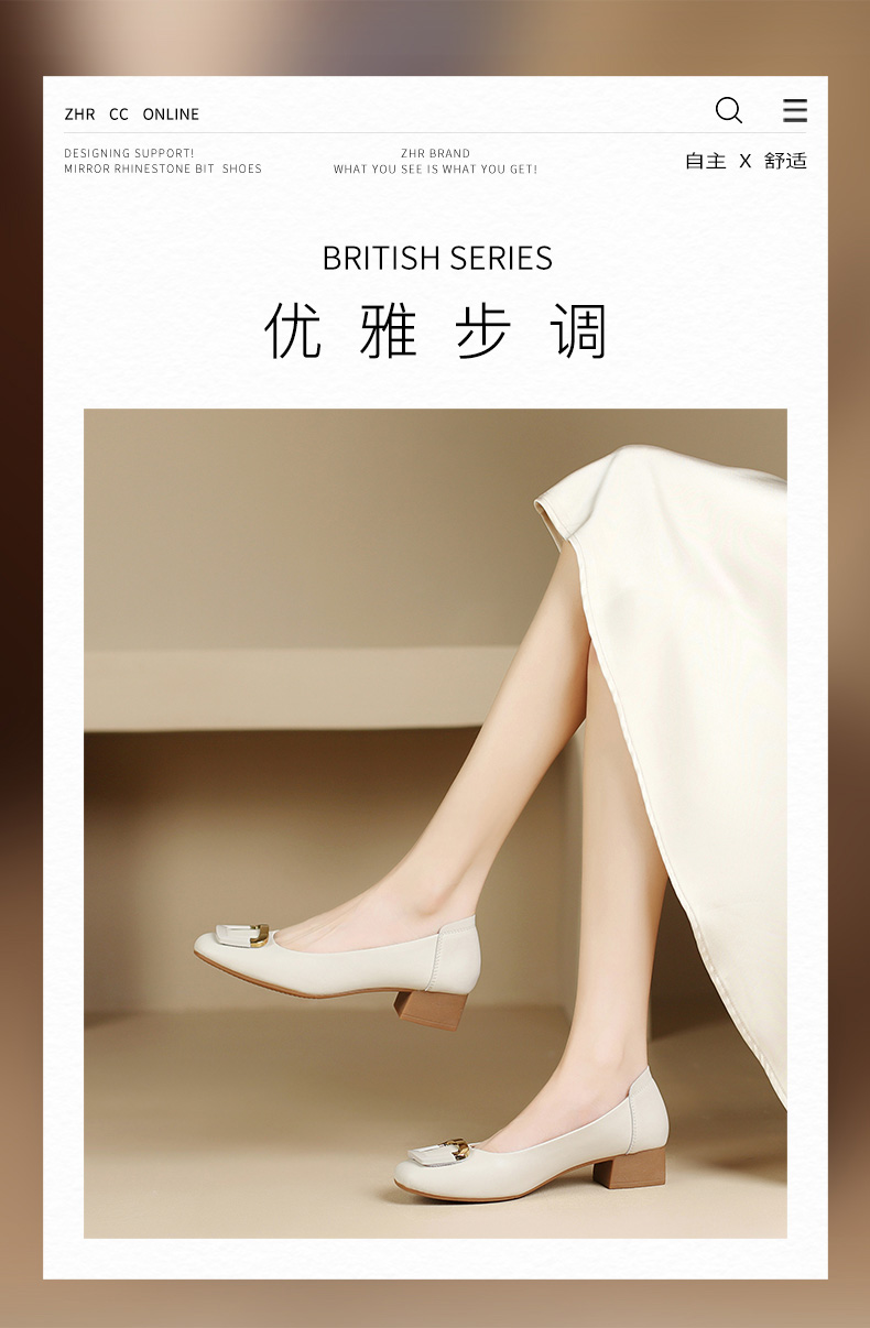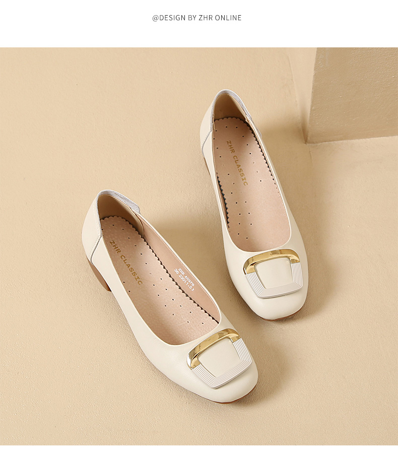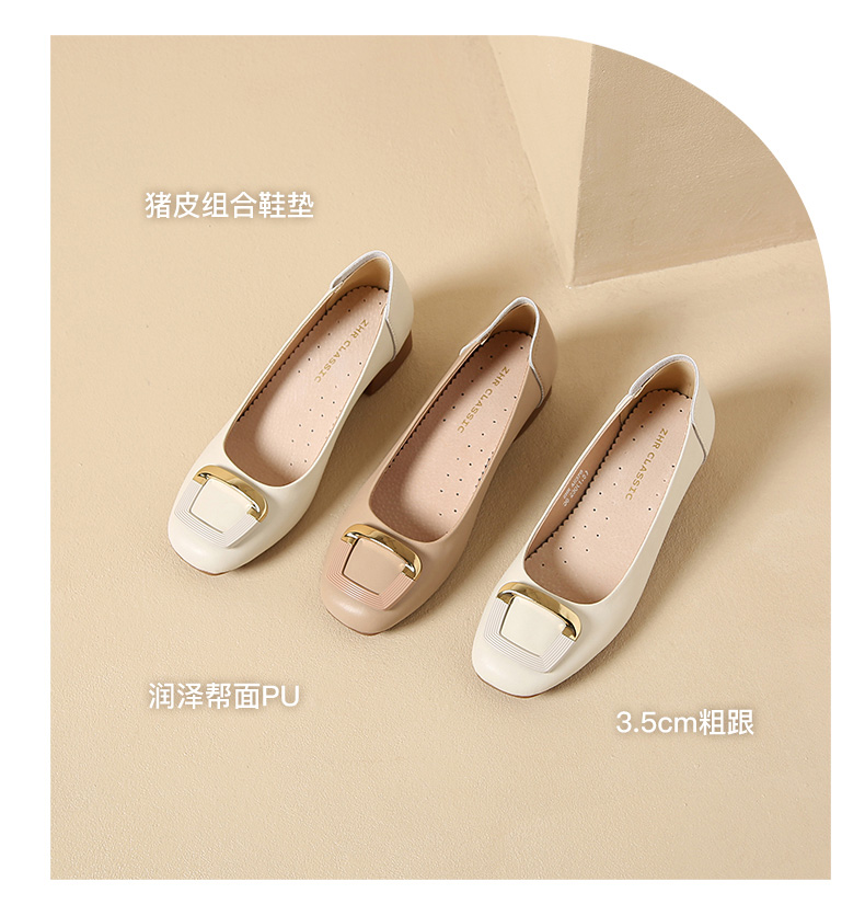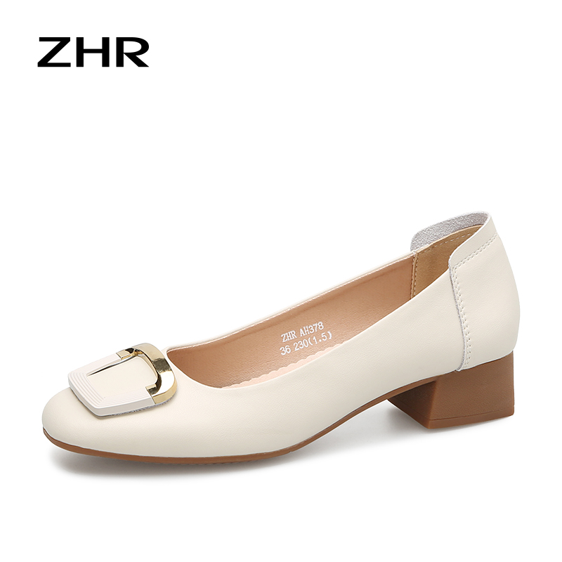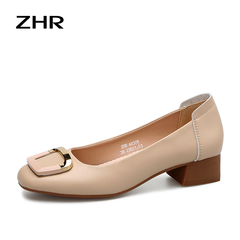 ZHR新款方形扣件粗跟软底浅口法式玛丽珍女鞋小皮鞋优雅时尚穿搭单鞋AH378