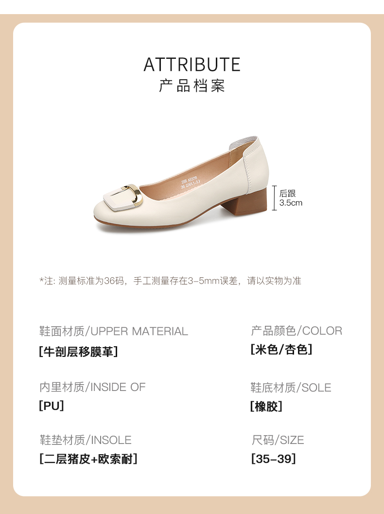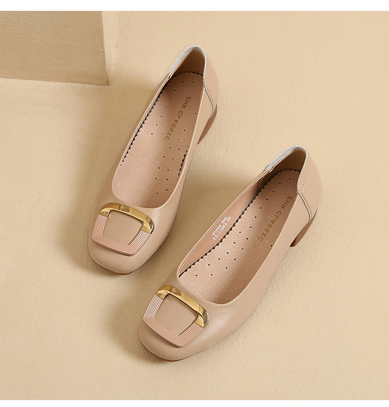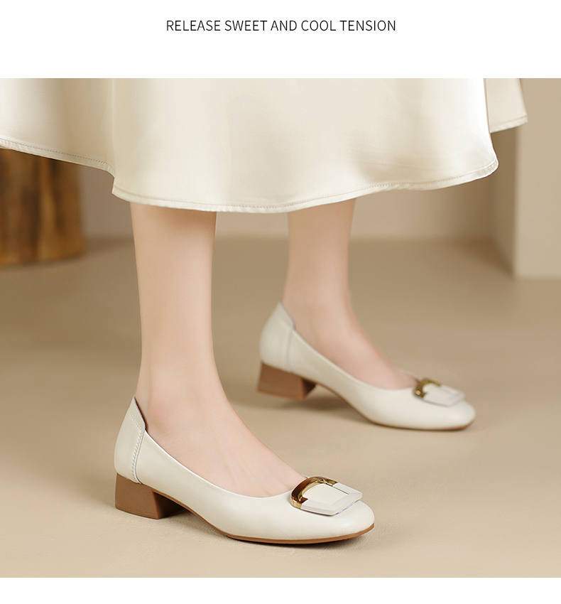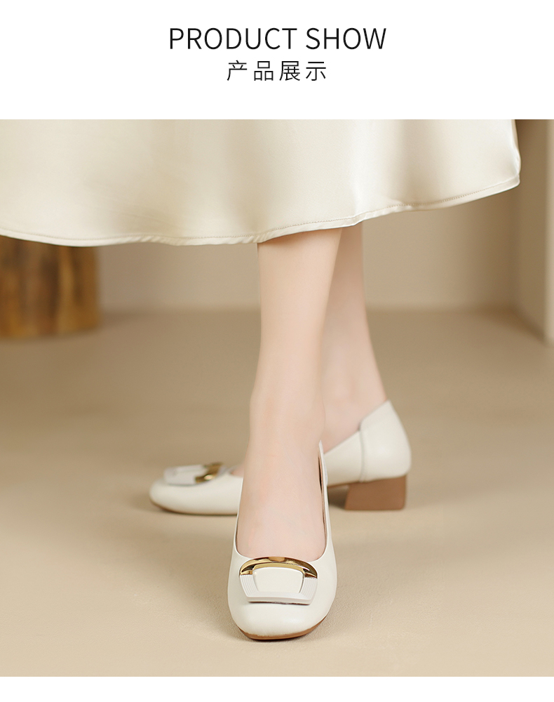 ZHR新款方形扣件粗跟软底浅口法式玛丽珍女鞋小皮鞋优雅时尚穿搭单鞋AH378