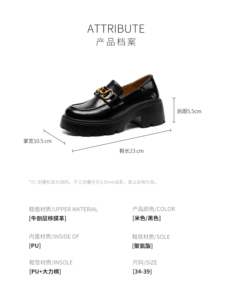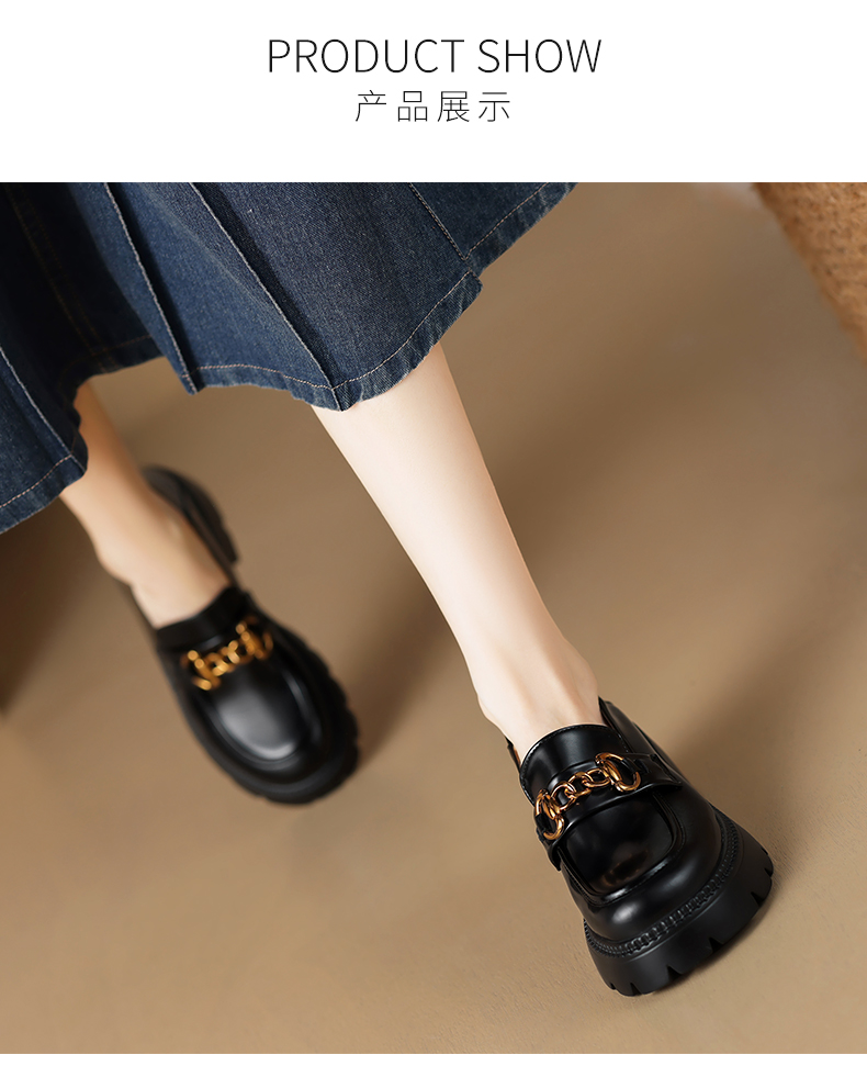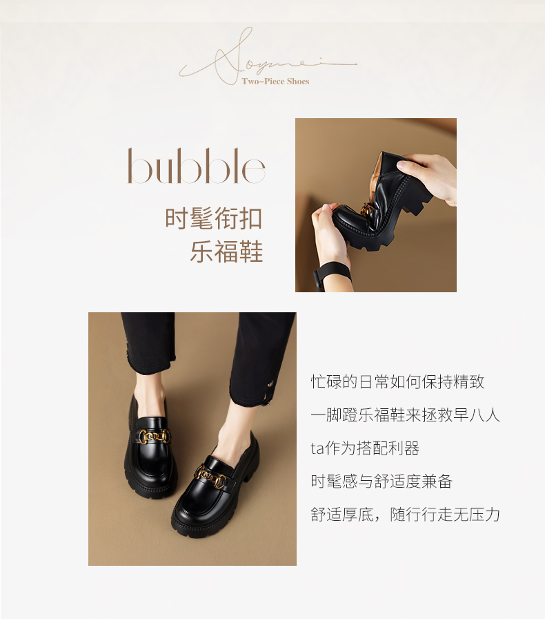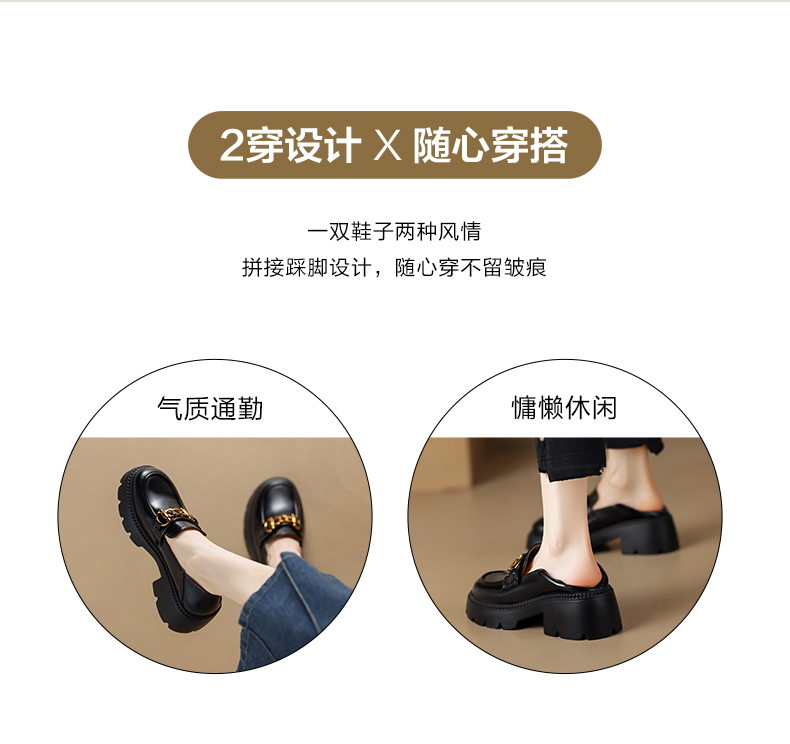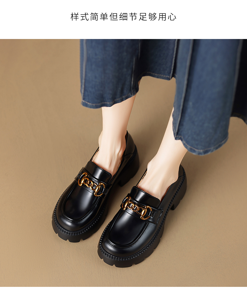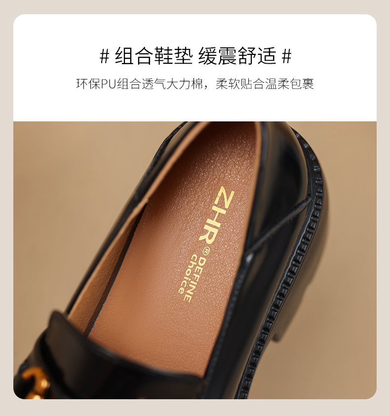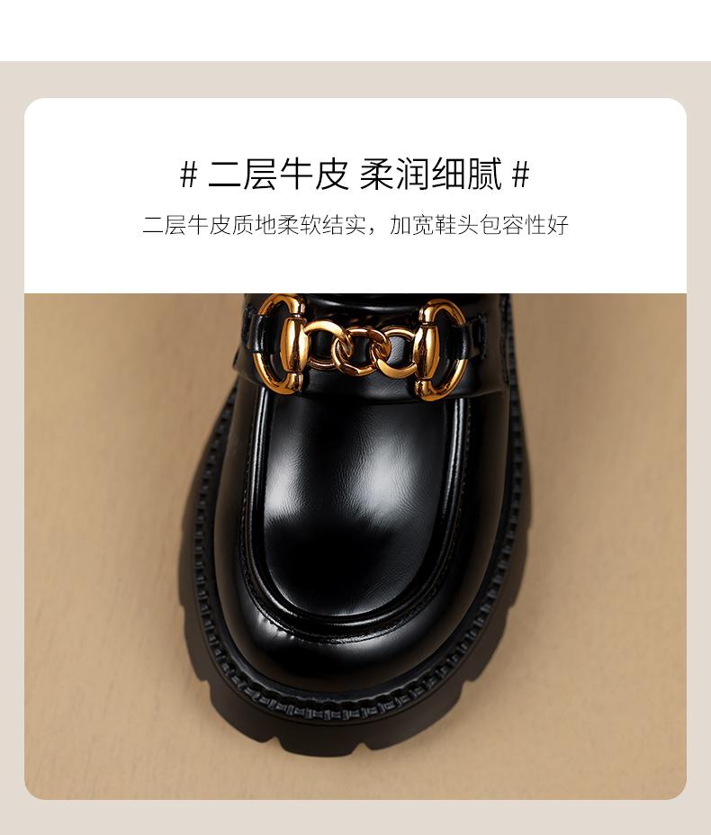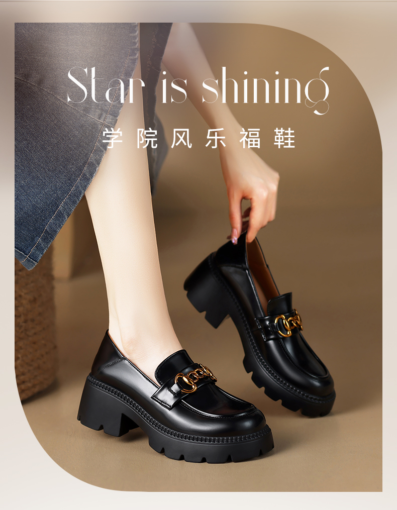 忙碌的日常如何保持精致 一脚蹬乐福鞋来拯救早八人 ta作为搭配利器,时髦感与舒适度兼备 舒适厚底,随行行走无压力 光泽感二层牛皮帮面 法式质感油然而生 聚氨酯厚底,厚而不重 拉长线条曲线的同时打造慵懒感