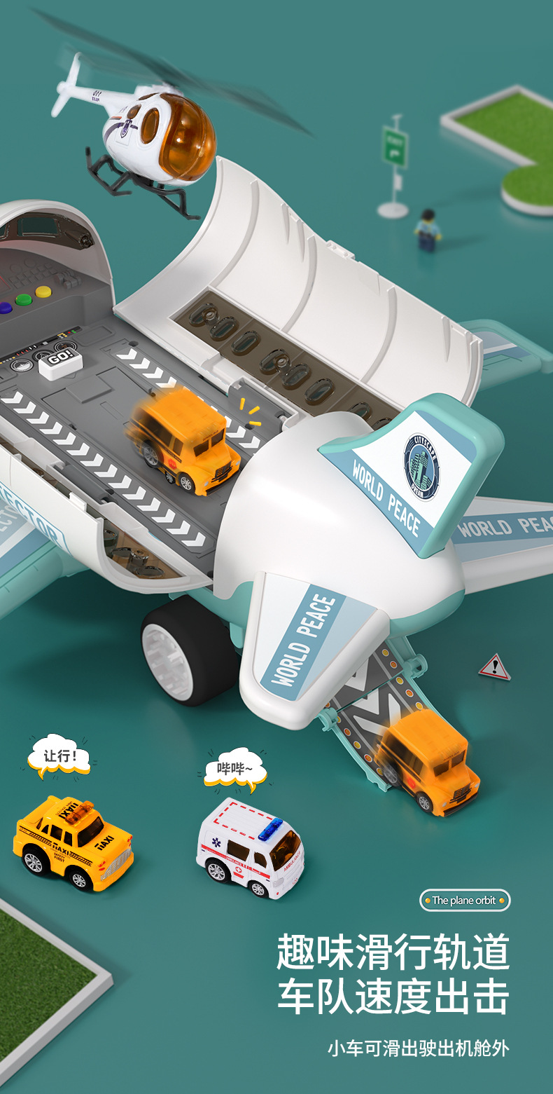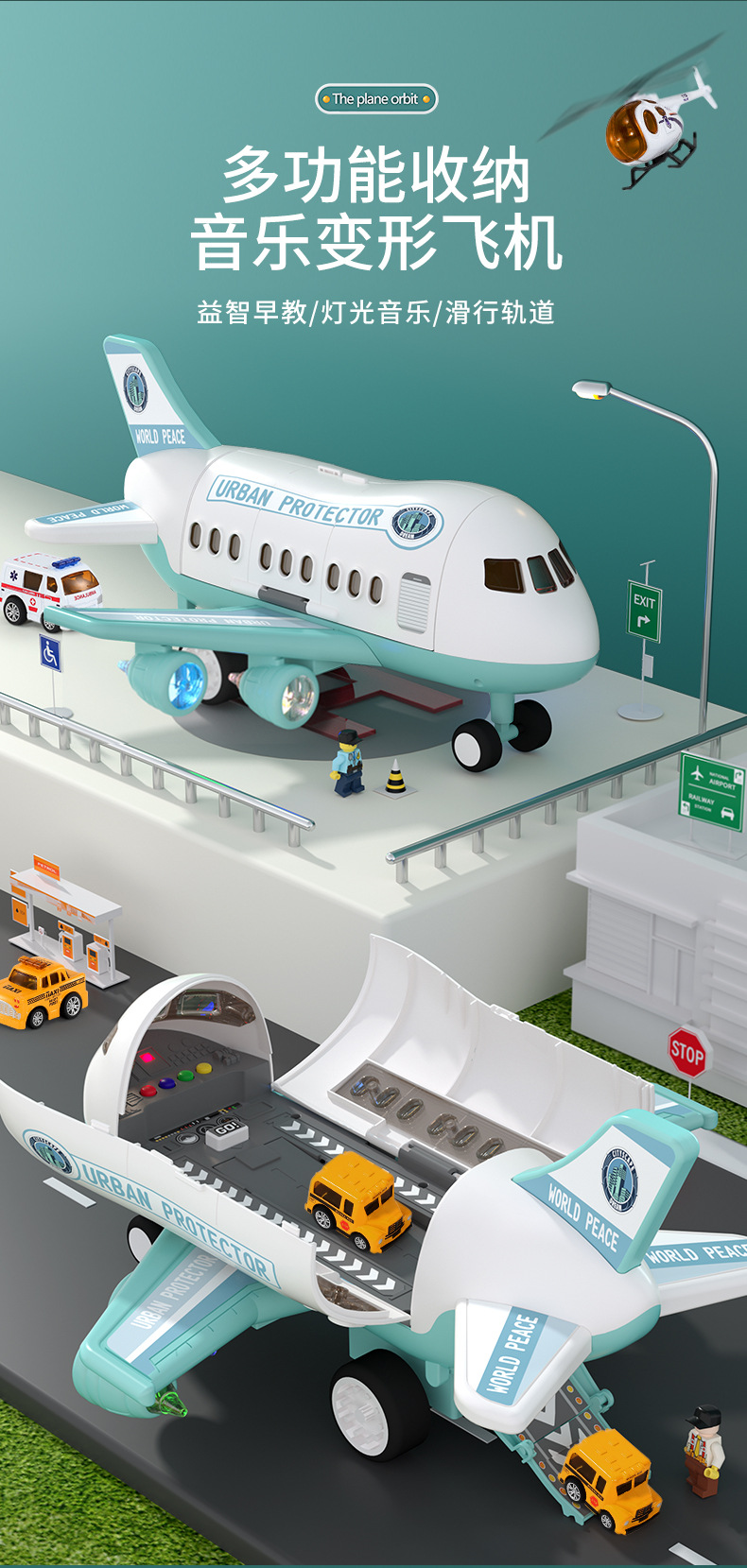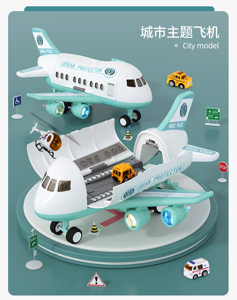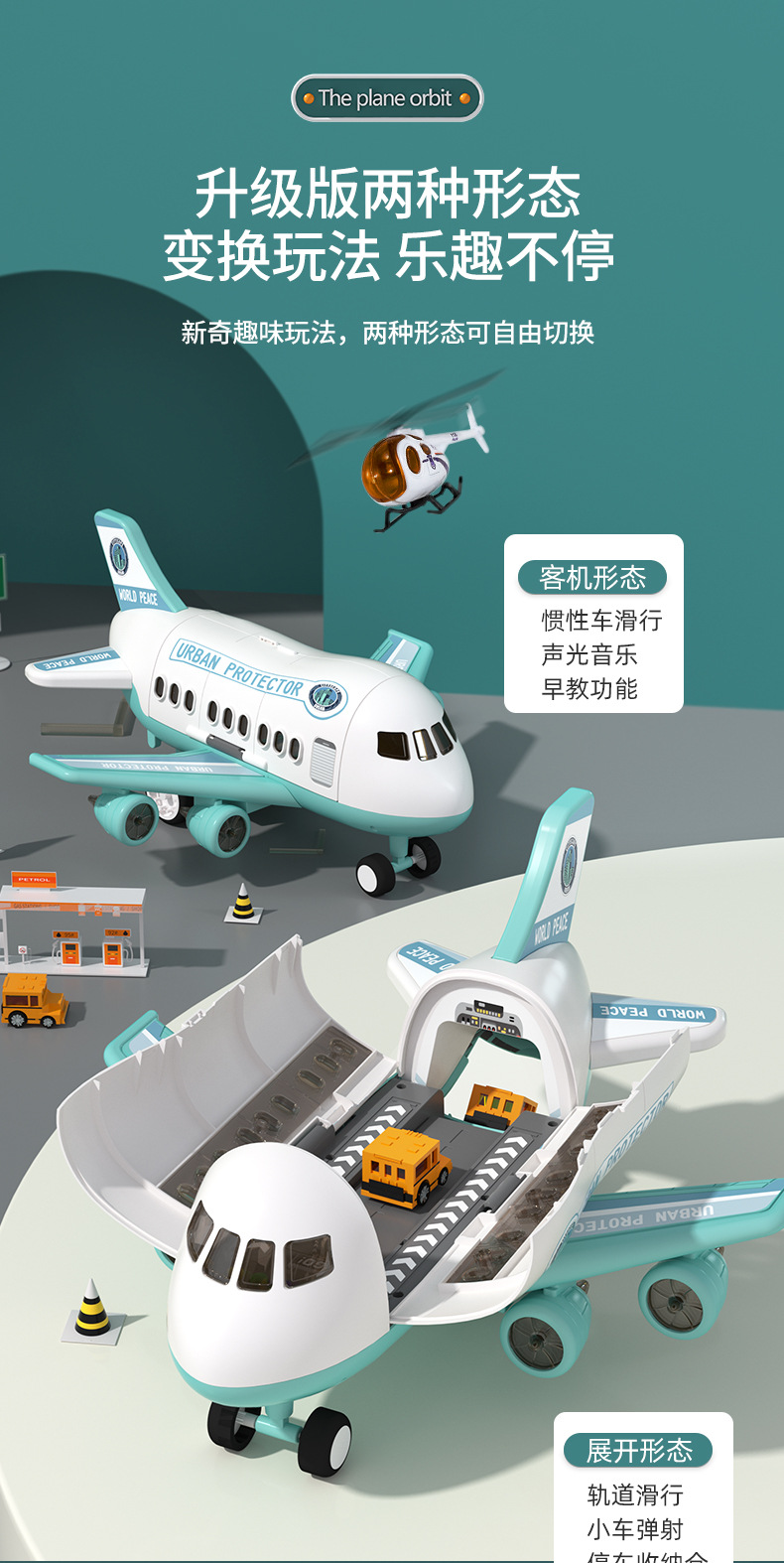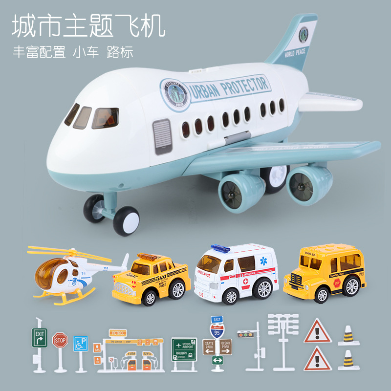 【新年礼物】大号飞机玩具儿童惯性车模型收纳套装音乐益智男孩玩具模型套装