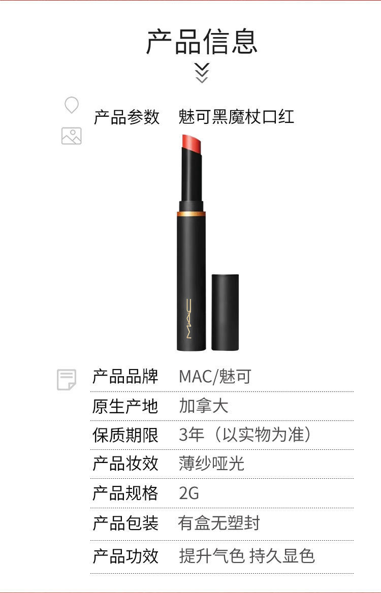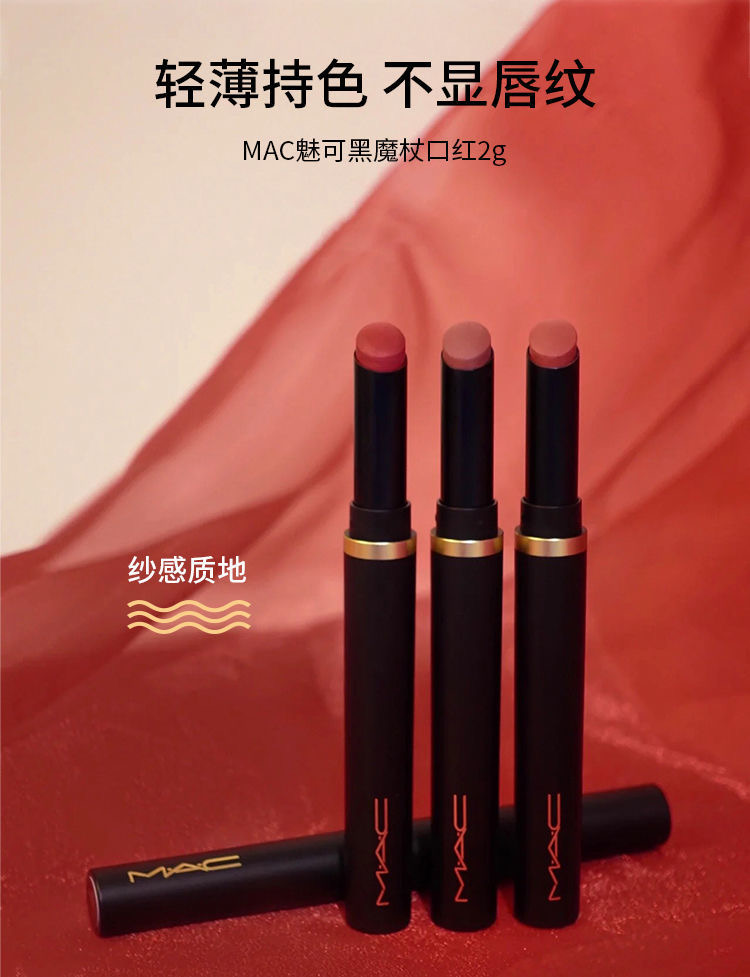 MAC黑魔杖全新酷酷的磨砂黑管,搭配金标也太高级了,整个系列的12支颜色都特别好看,质地没话说,上嘴后颜色持久度也杠杠的,用起来饱和度刚刚好,深唇也能轻松驾驭。