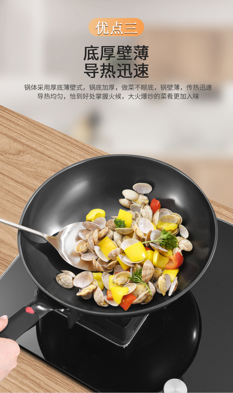 【新品】德铂debo 24CM欧岱拉无涂层炒锅炒菜锅 无涂层 精巧加深