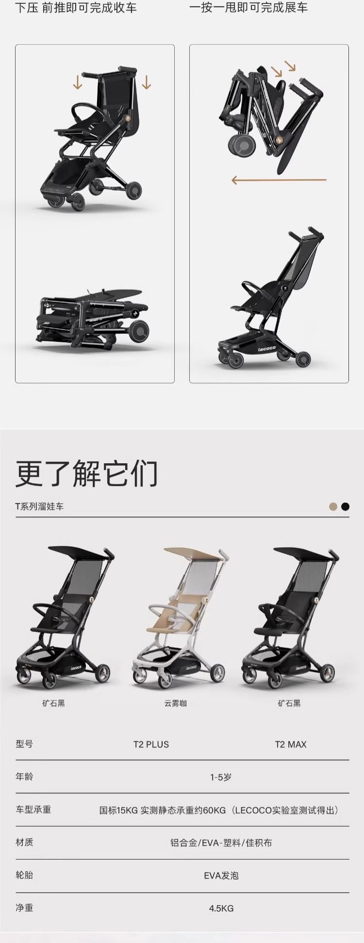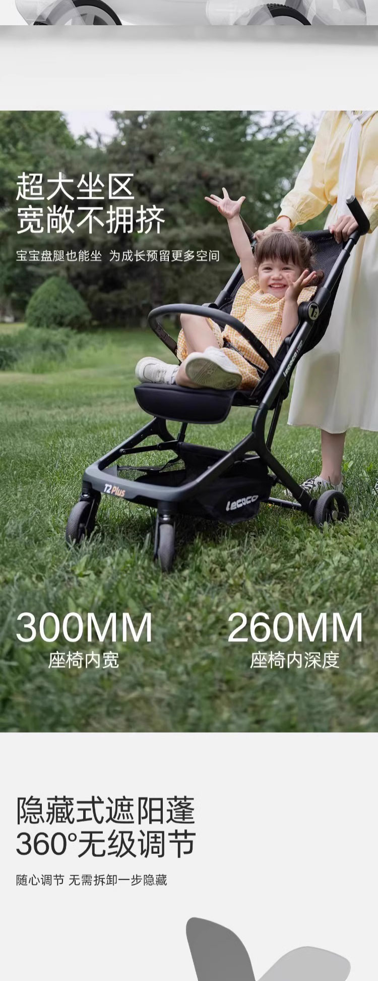 lecoco乐卡四轮轻便折叠婴儿手推口袋车简易超轻可登机t2MAX-遛娃神器T2PLUS