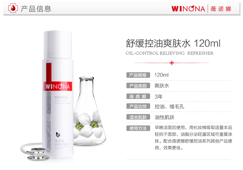 薇诺娜舒缓控油爽肤水 120ml/瓶 化妆柔肤水清洁混油补水