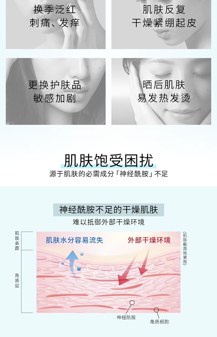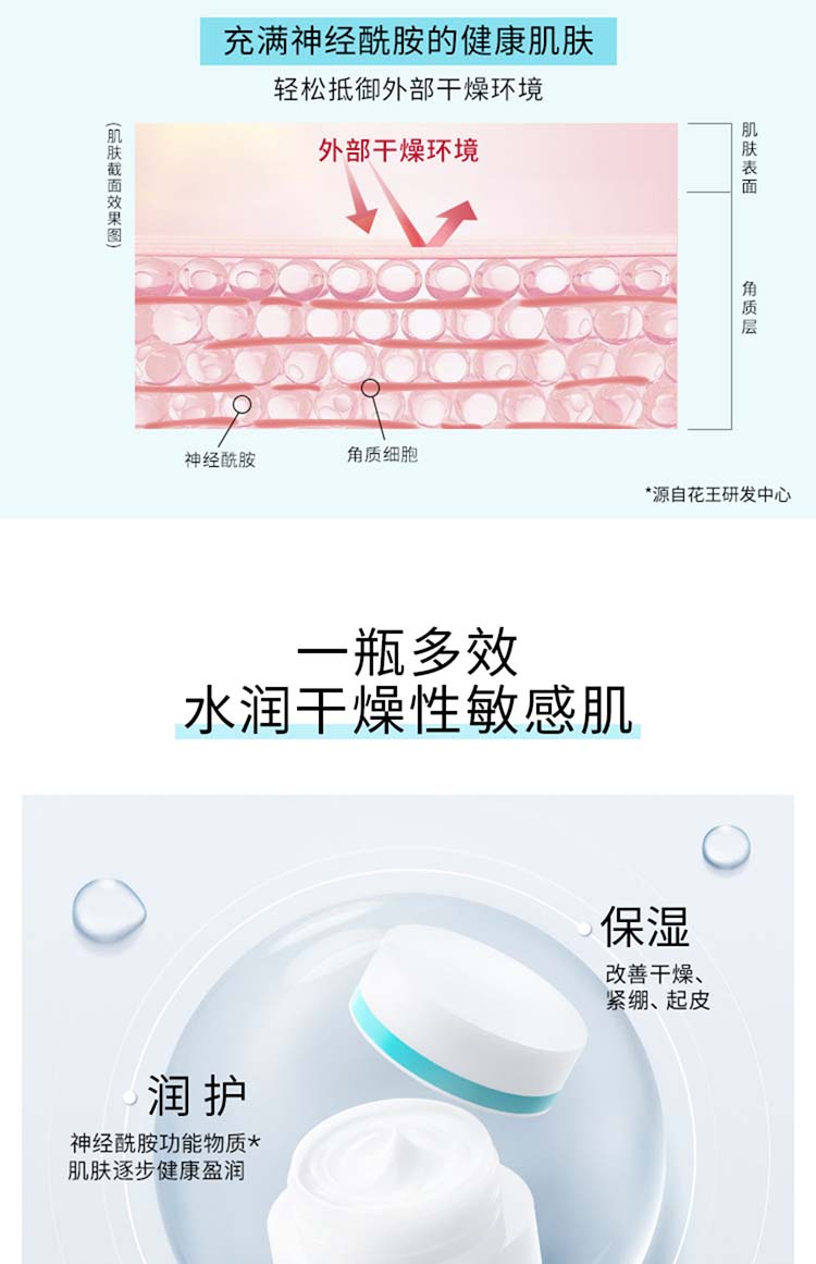 改善皮肤粗糙,保持细嫩柔滑。滋润的同时保持轻盈舒适的使用感。