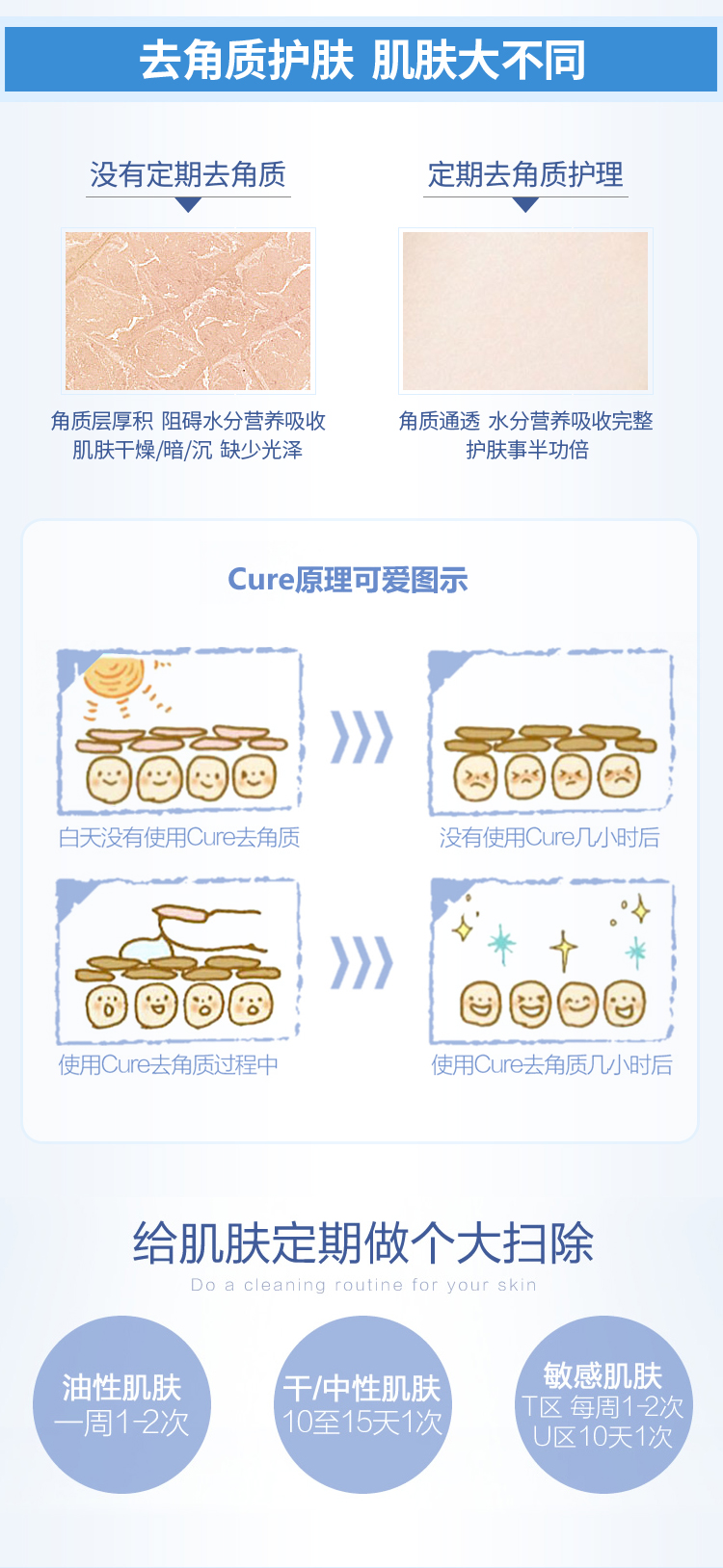 帮助皮肤清理废旧角质,去除死皮与毛孔里的污物,促进肌肤新陈代谢,维护肌肤本身正常的更新。去角质的同时被不破坏皮肤。敏感性肌肤也能使用。提升肌肤吸收能力,使其他保养品能更好的被肌肤吸收。