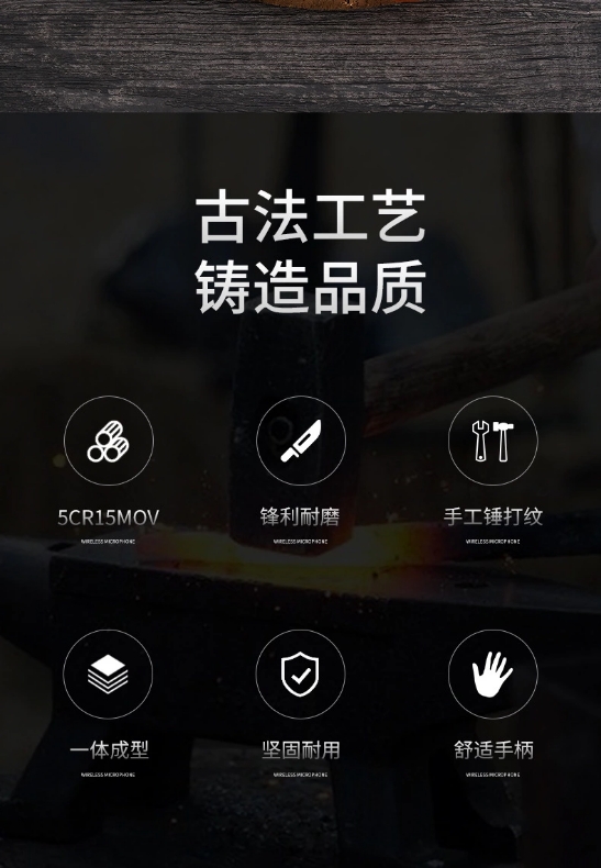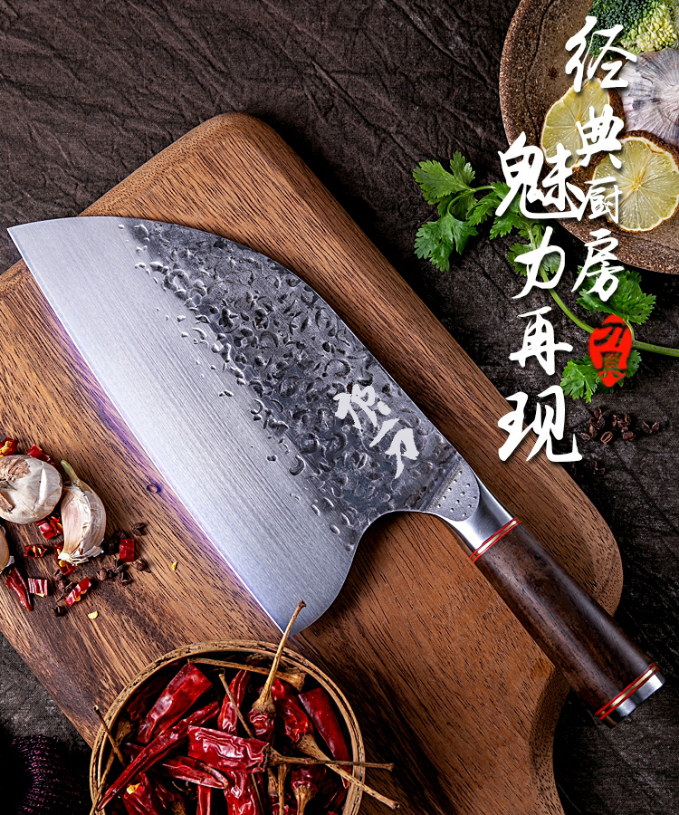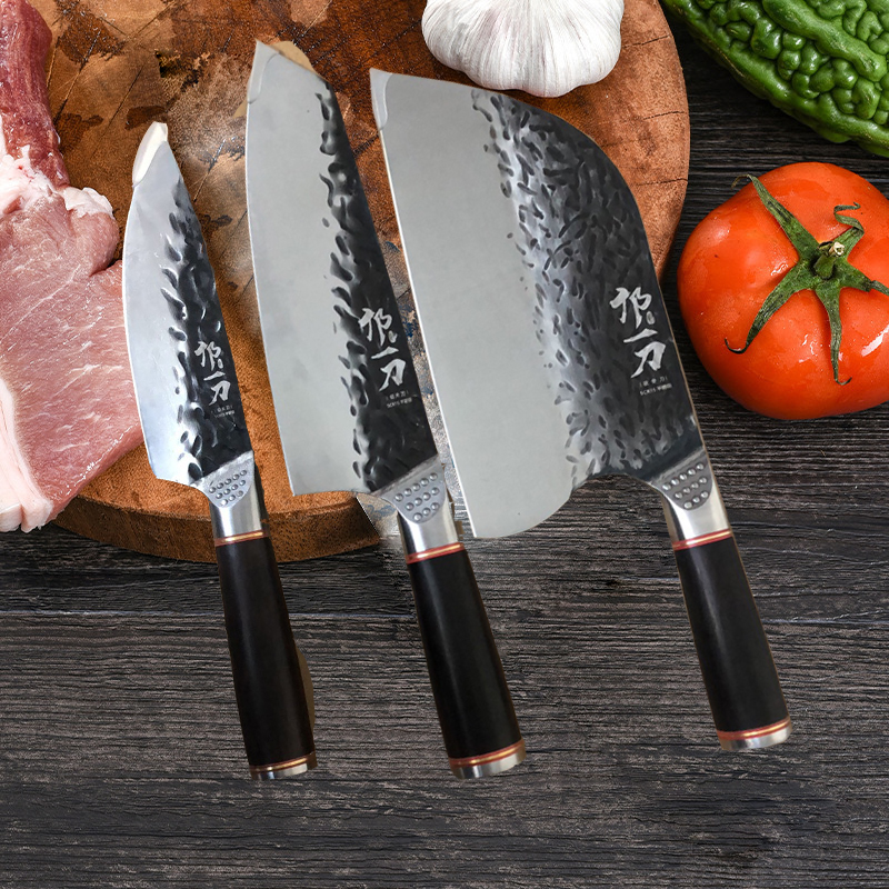 邝一刀手工锻打菜刀 家用厨房刀 复古4件套刀组合 切片刀厨师专用 4铬钢材质 斩骨刀切片刀 厨师刀 剪刀 菜刀精美礼盒