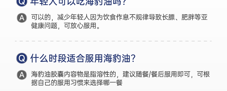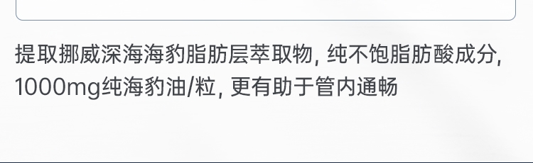 遴选挪威极为珍贵的海豹油为原料,富含EPA、DHA、DPA、O-3,O-6,O-9等多重精华,比深海鱼油更易吸收,不含胆固醇,主要针对心脑血管疾病,缓解预防三高