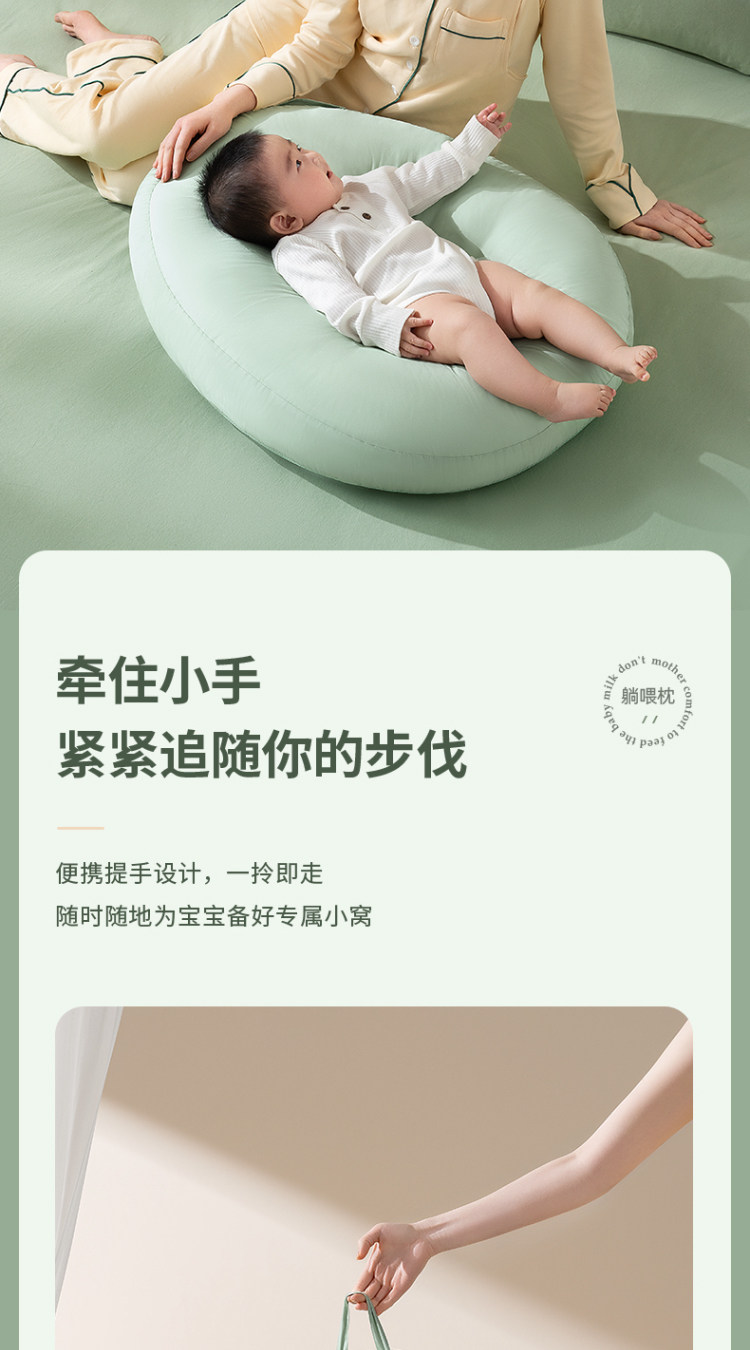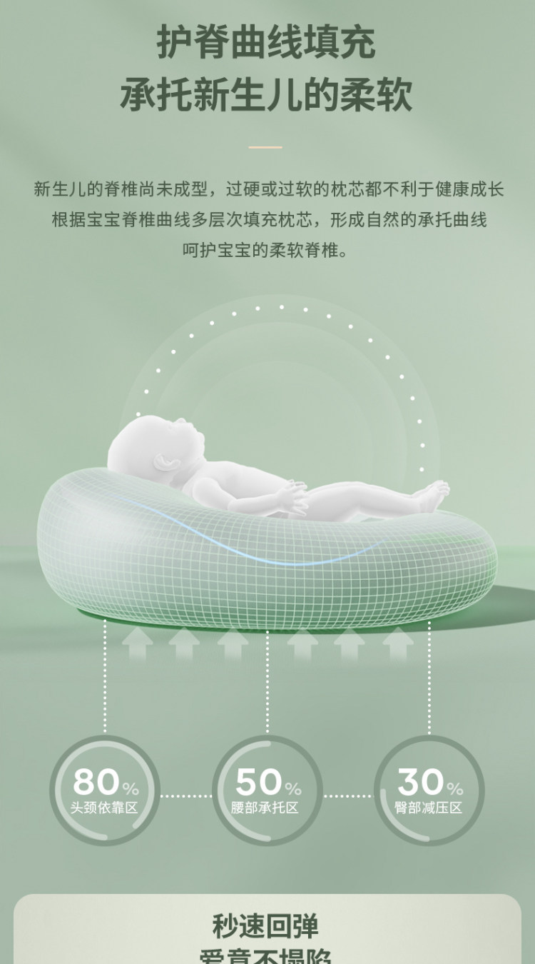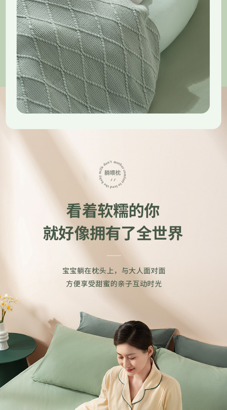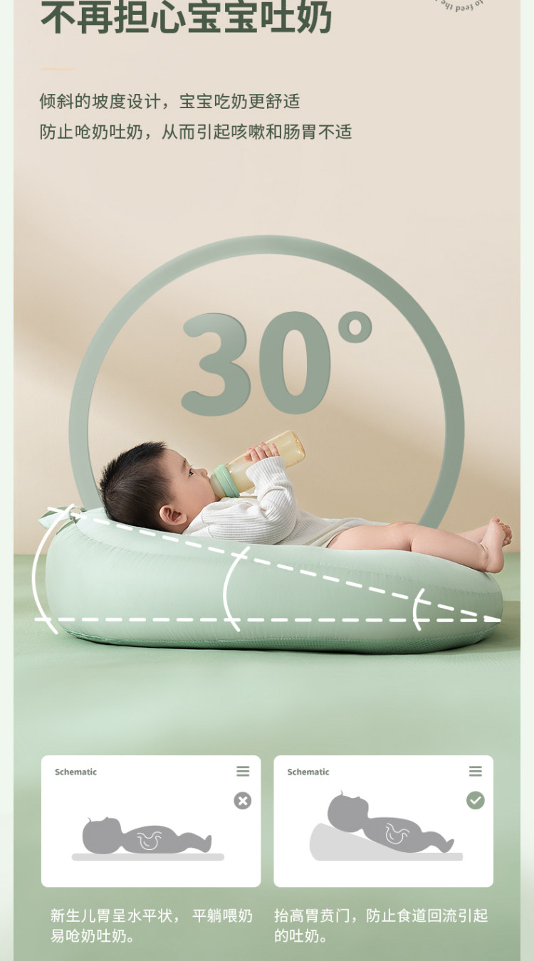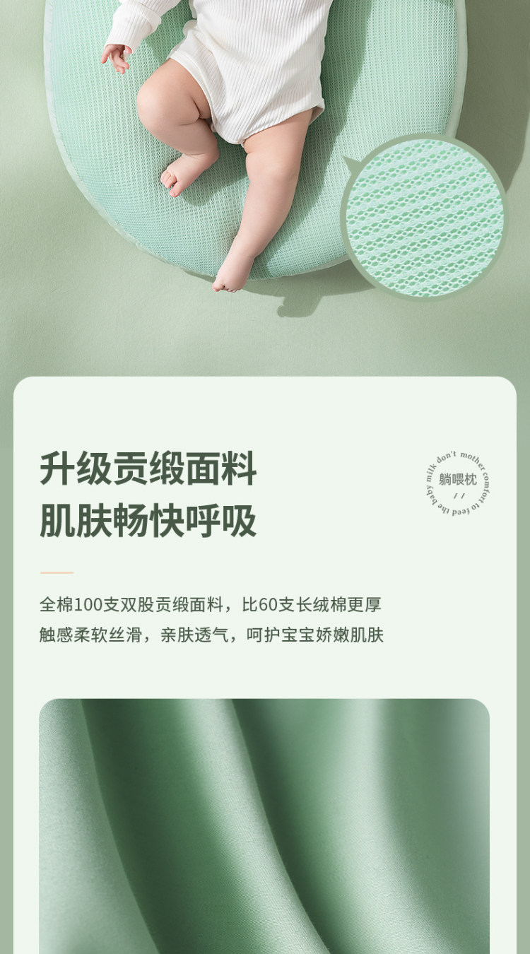 学抬头学趴 双面可用 可拆洗 亲肤透气 防水内衬 丝滑贡缎面临料 饱满不塌
