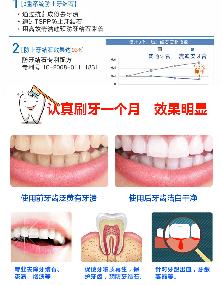 清新亮白无需掩藏,笑出自然魅力!强力去除牙垢污渍,让牙齿焕然新生,弃暗投明,还原洁白亮齿,清新口气,让你运气清爽直达,无需拐弯抹角,持久清香更迷人~