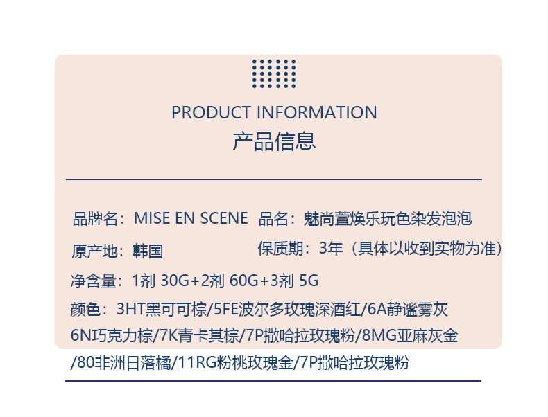 韩国LG 睿嫣 秀发秘策染发霜 20g*3+20g*3 六款颜色