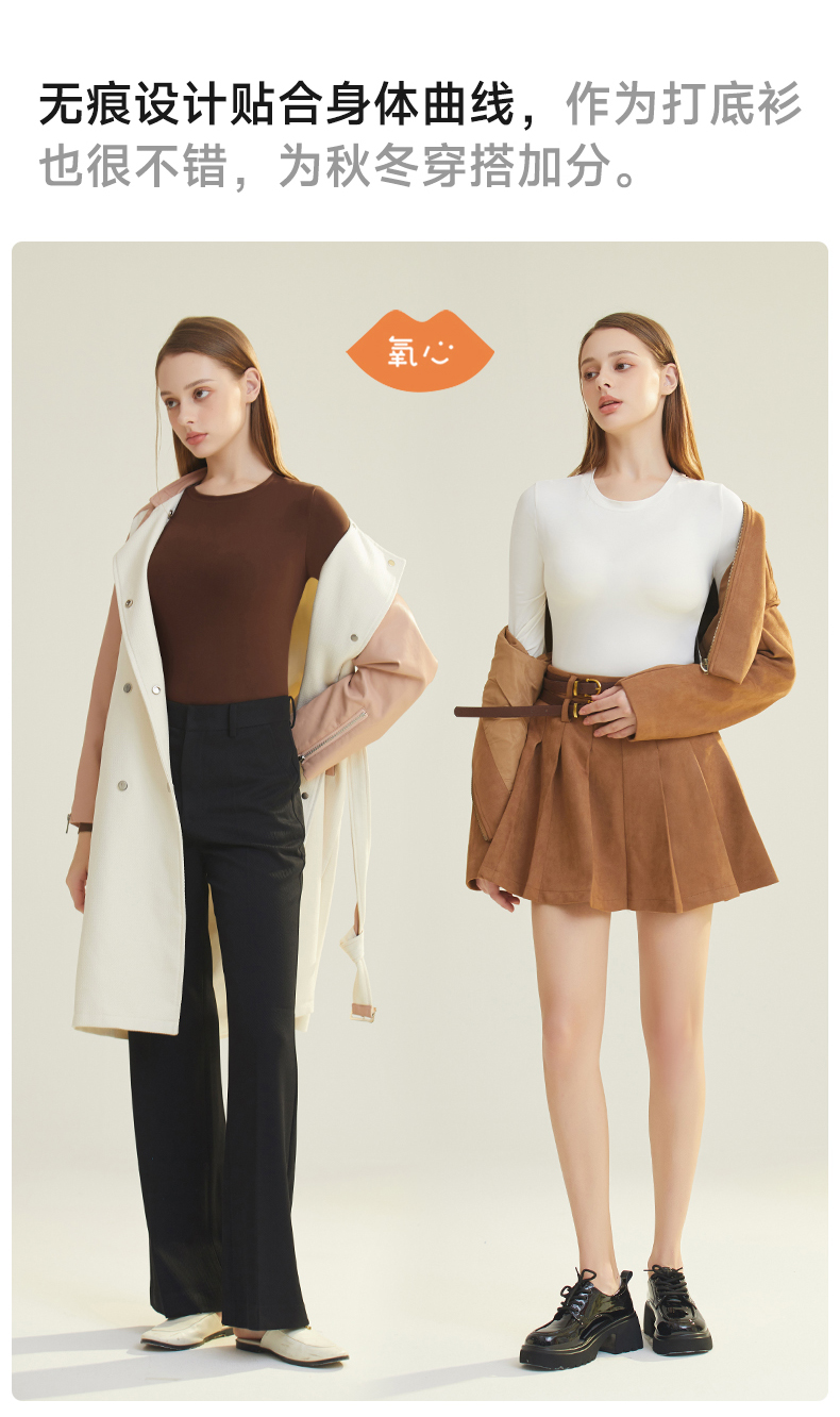 这是一件轻暖发热的打底衣,甄选60S超细旦面料,凝萃蚕丝蛋白精华,还原其丝般质感,裸感舒适,柔软亲肤,养肤润肤,舒适透气,给肌肤蚕丝蛋白面膜般的呵护,有效抗静电,防止皮肤干燥发痒,给秋冬干皮say bye bye!面料采用轻磨毛工艺,细腻有质感,超弹舒适不紧绷,自由穿搭无束缚,上身即暖,轻薄保暖,拒绝臃肿。版型百搭,做工精良,品质保证,基础圆领万能百搭,可做基础打底搭配外穿,也可做基础保暖内穿,减龄又显气质,多色可选,尺码可选,满足多元选择!