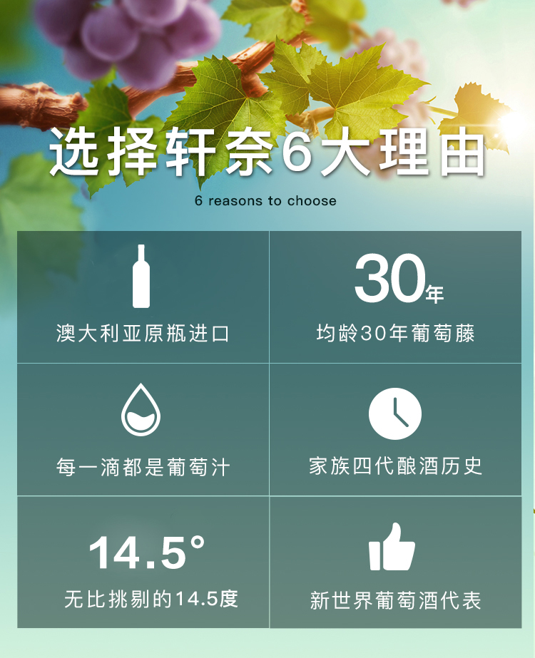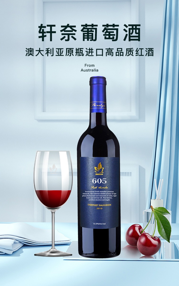 轩奈605干红葡萄酒,澳洲酒庄直供,赤霞珠经典单酿,适合国人口感,口感饱满,果香丰富。14.5度酒精度,让您更微醺的感觉!
