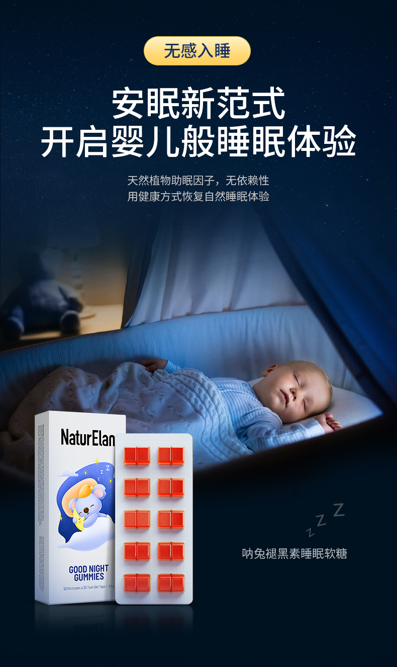 美国进口GNITE非褪黑素葡萄味2代升级版gaba软糖无糖软糖60粒/瓶