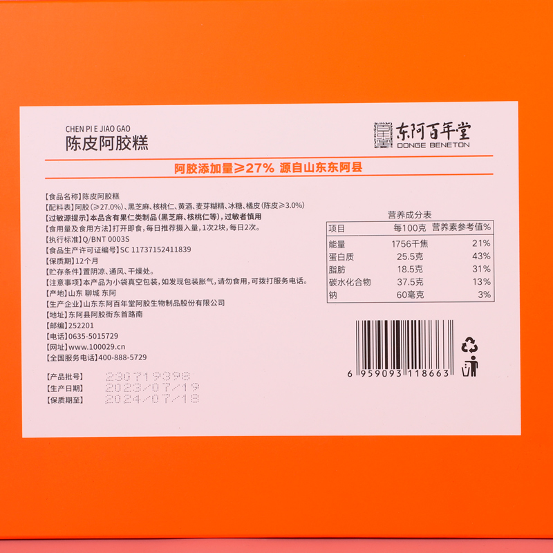 源自山东东阿县陈皮阿胶糕 阿胶+陈皮,27%阿胶含量