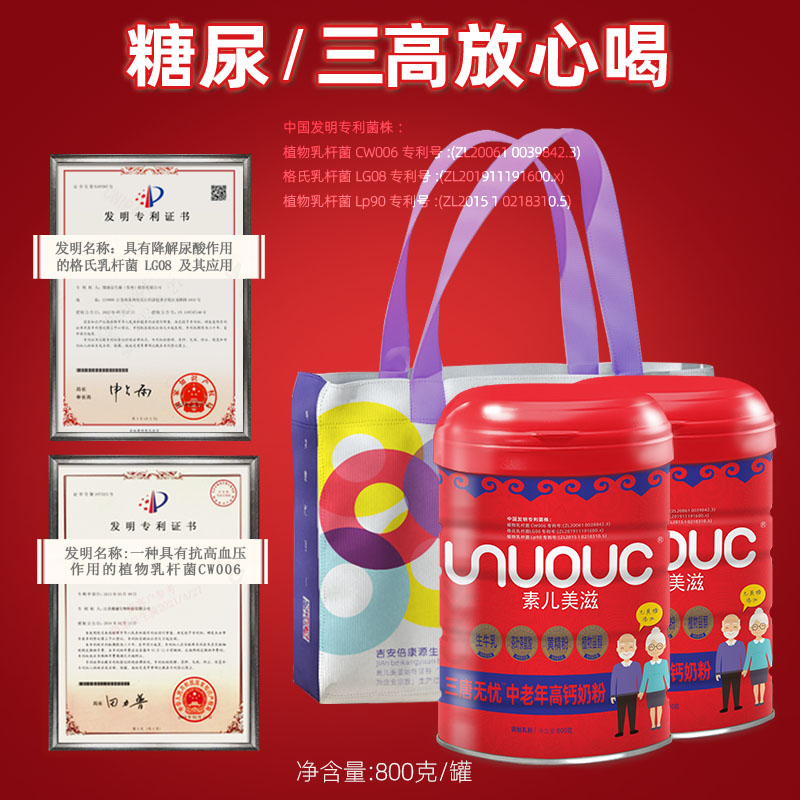 三唐无忧中老年高钙奶粉生牛乳配方专为中老年人定制,添加多款降三高专利益生菌,糖尿、三高人群放心喝!