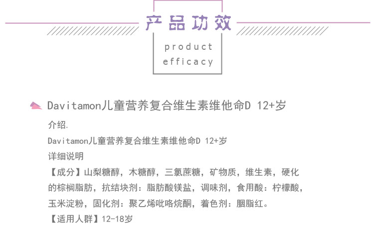 Davitamon是比利时OMEGA PHARMA制药集团子公司。成立于1982年,专门研究高质量的营养补品。Davitamon正在根据目前的科学研究,开发针对不同人群的特定需求的维生素和矿物质,旨在为每一个人提供优质的营养补充。
