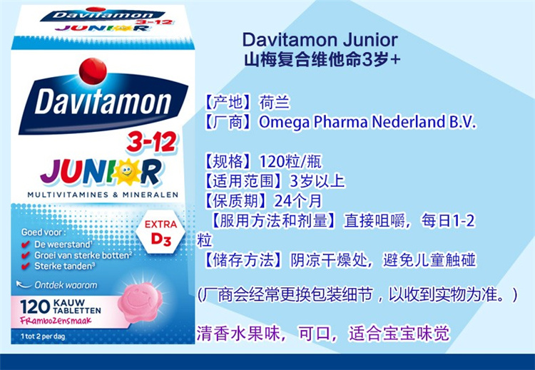 Davitamon是比利时OMEGA PHARMA制药集团子公司。成立于1982年,专门研究高质量的营养补品。Davitamon正在根据目前的科学研究,开发针对不同人群的特定需求的维生素和矿物质,旨在为每一个人提供优质的营养补充。