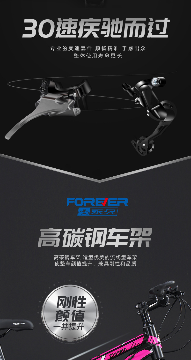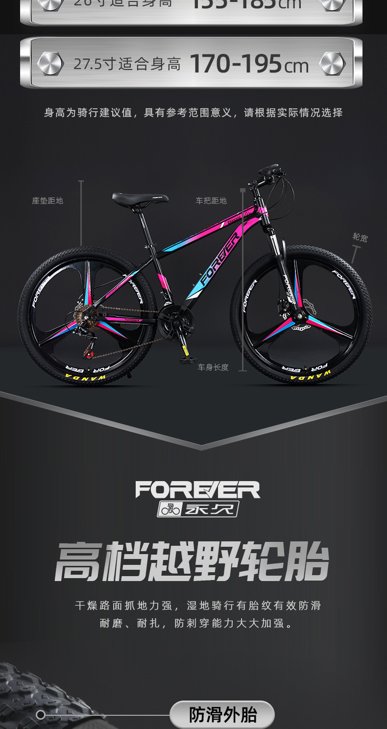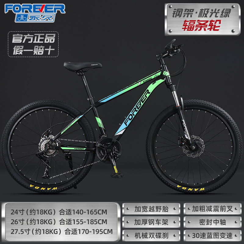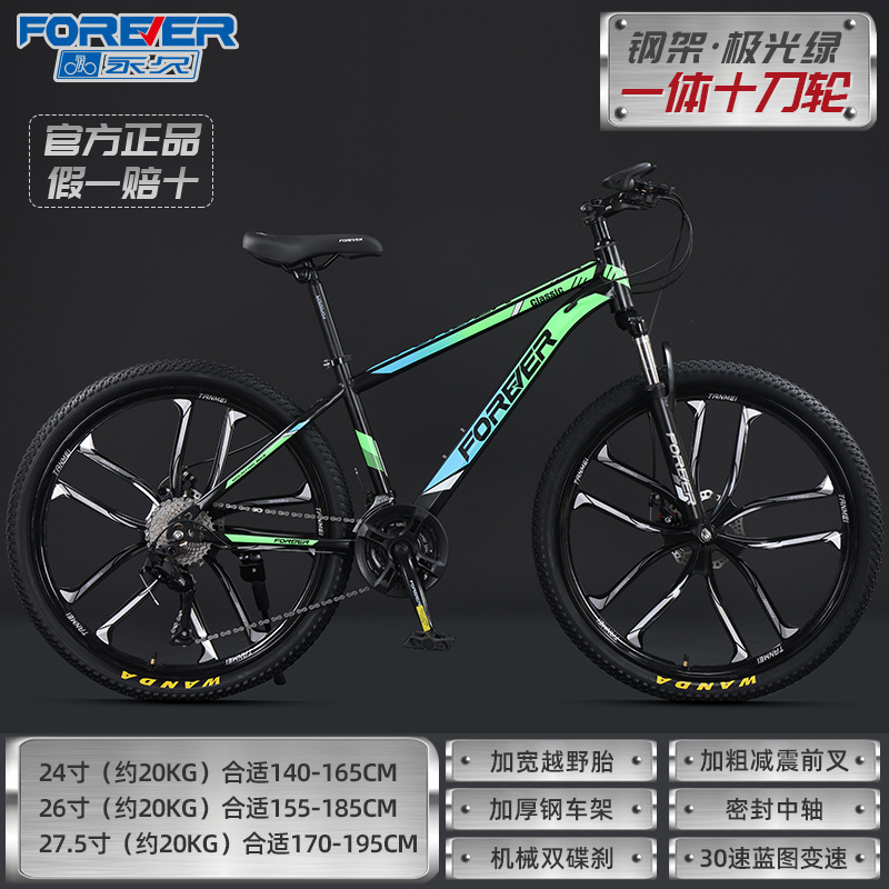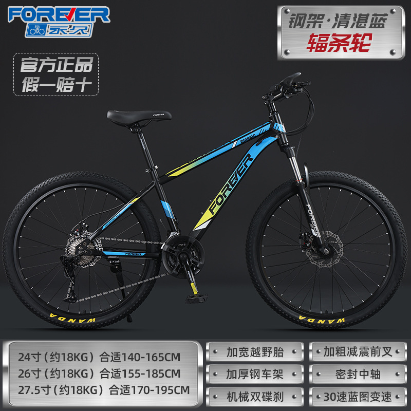 上海永久牌铝合金山地车自行车男女学生30速变速碟刹减震26寸单车