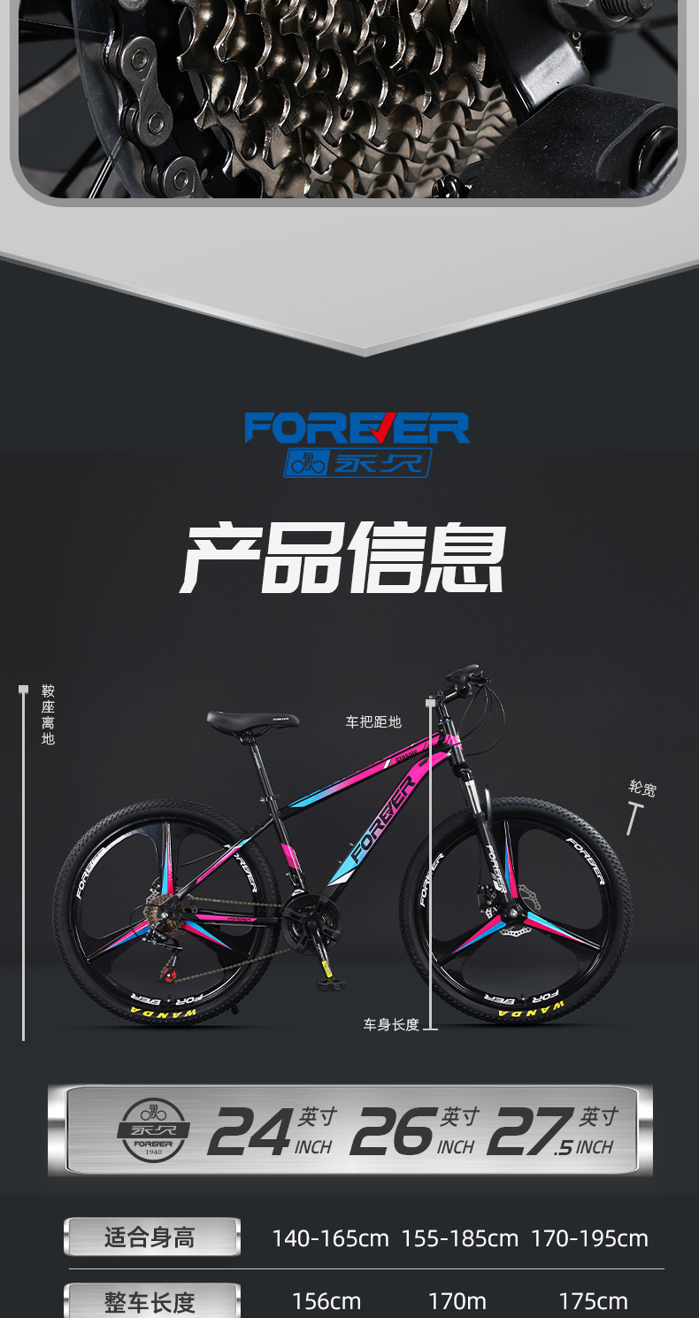 上海永久牌山地自行车男式新型变速单车公路赛车青少年女学生成人24/26寸