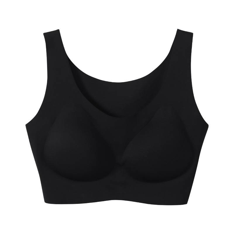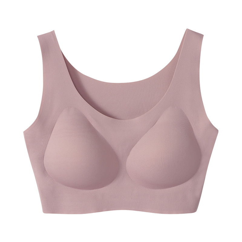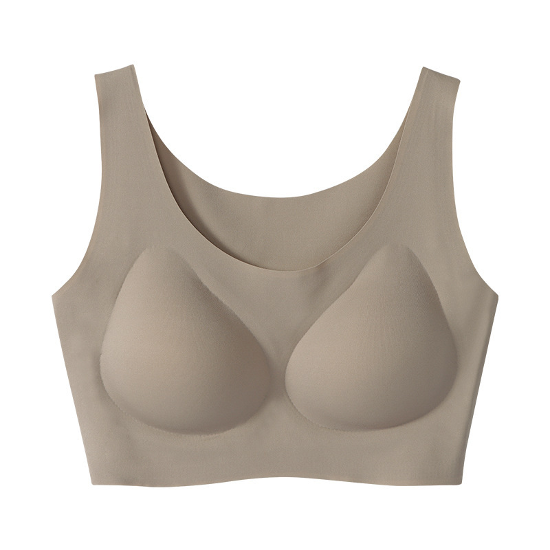阳阳花夏季超薄冰丝无痕内衣女薄款透气一片式美背背心大胸显小睡眠文胸成人少女文胸