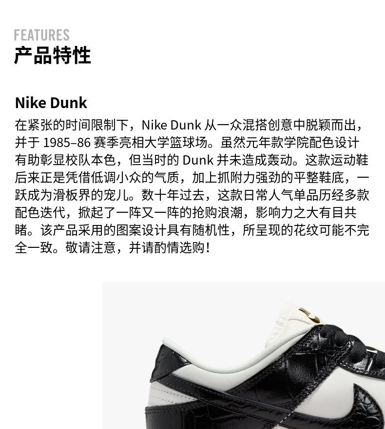 Nike耐克官方DUNK LOW女子运动鞋新款板鞋低帮复古熊猫配色FJ2260