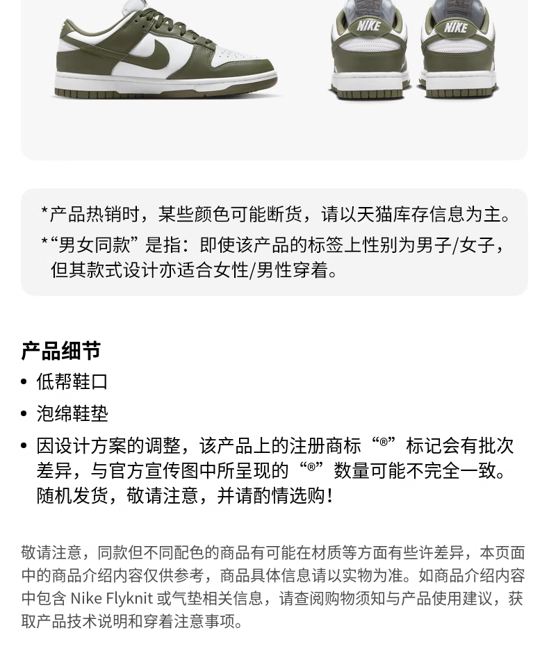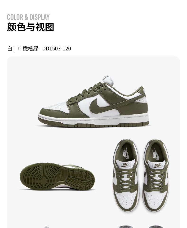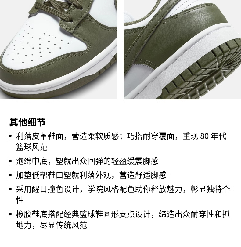 Nike耐克官方DUNK LOW女子运动鞋复古板鞋夏季低帮橄榄绿DD1503