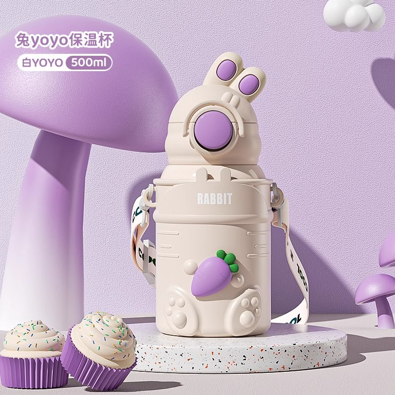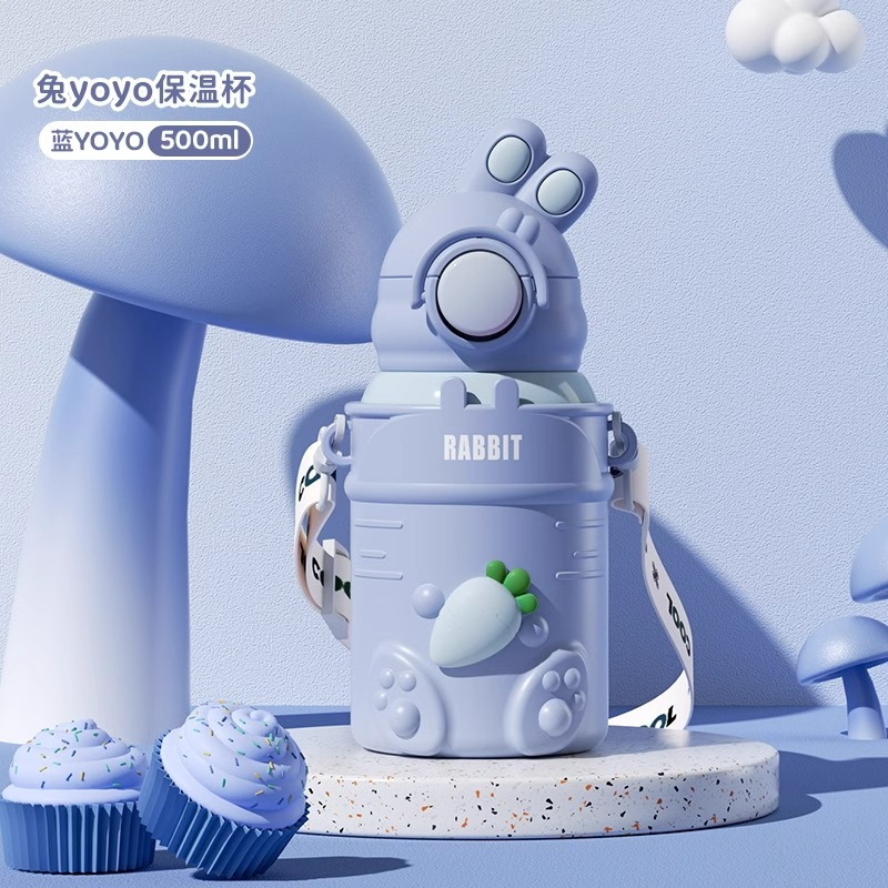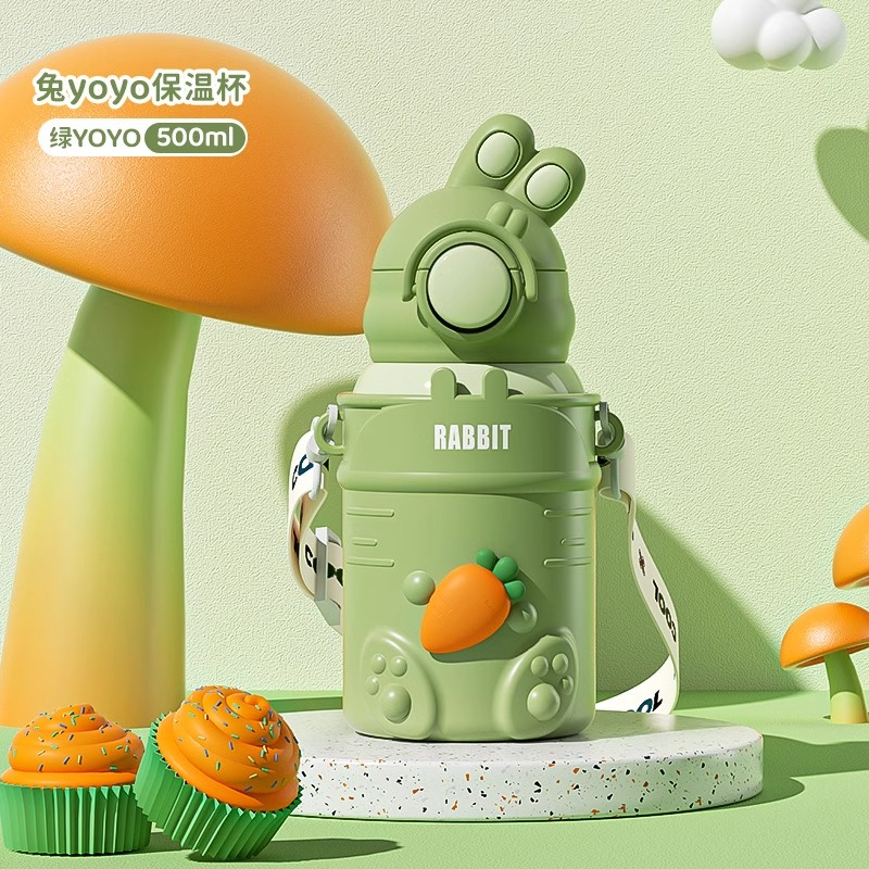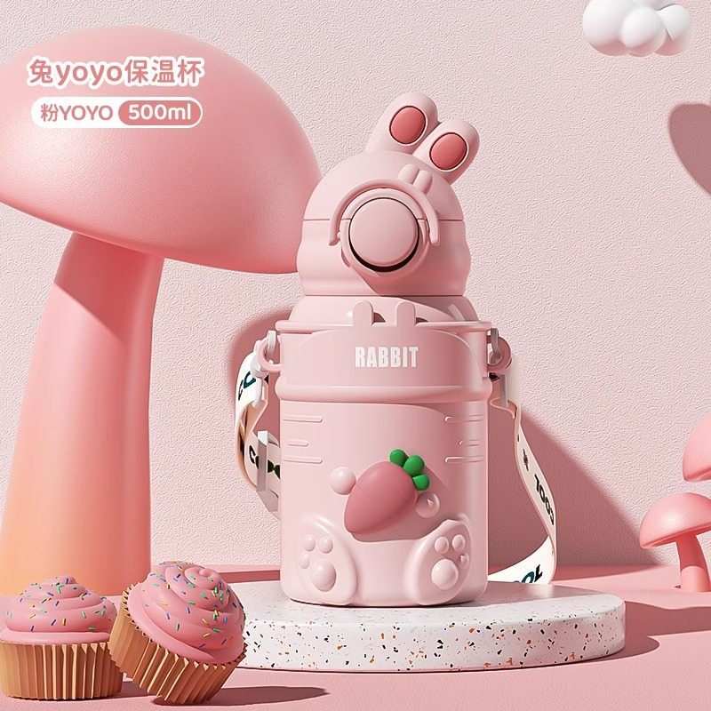 yoyo兔儿童保温杯,316内底,304内胆材质,健康安全使用,便携背带,游玩出行超级方便,一键弹盖,硅胶杯套,精美彩盒,门店方便售卖,送人送礼有面子~