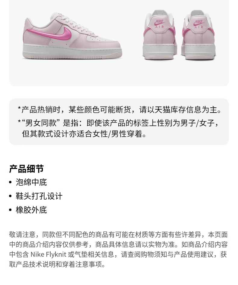 Nike耐克官方AIR FORCE 1女空军一号运动鞋秋新款猫爪HM3696