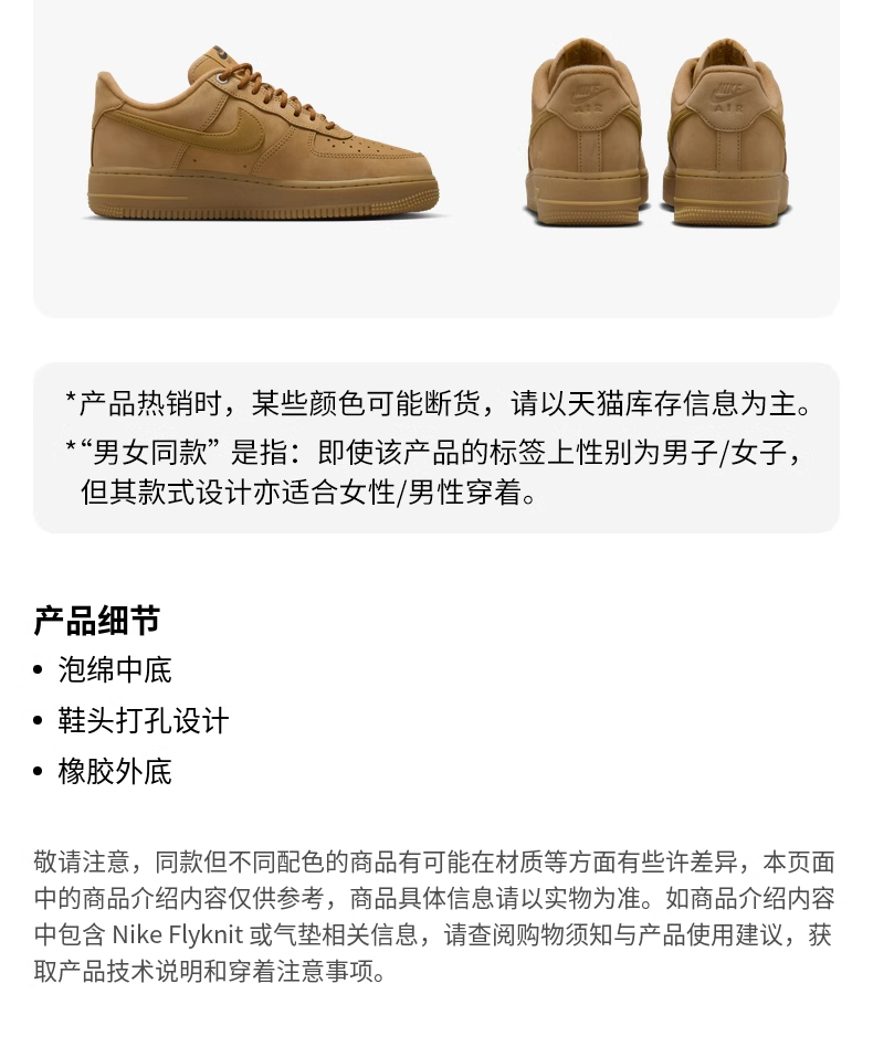 Nike耐克官方AIR FORCE 1女子空军一号运动鞋夏季胶底板鞋FZ7372