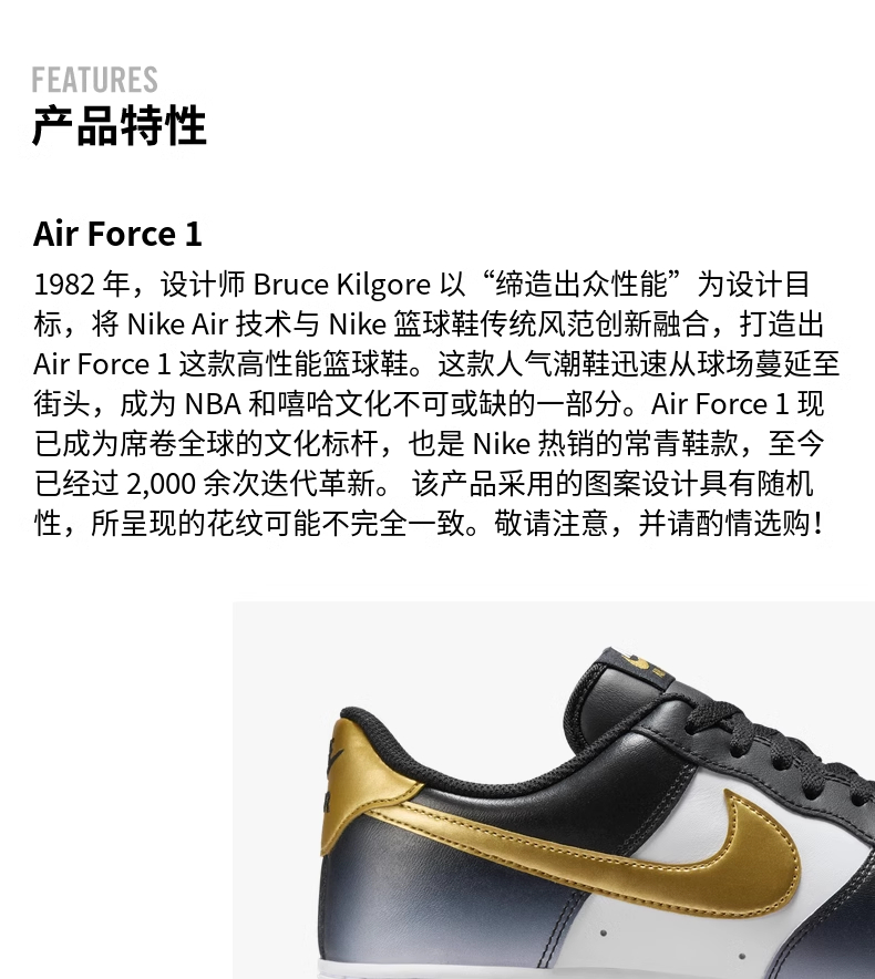 Nike耐克官方AIR FORCE 1男子空军一号运动鞋秋季新款胶底HJ9128