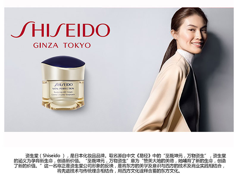 资生堂(Shiseido ),是日本著名的化妆品品牌,品牌秉承了“百年匠心,让美资生”的理念。取名源自中文《易经》中的“至哉坤元,万物资生”,资生堂的涵义为孕育新生命,创造新价值。“至哉坤元,万物资生”意为“赞美大地的美德,她哺育了新的生命,创造了新的价值。”这一名称正是资生堂公司形象的反映,是将东方的美学及意识与西方的技术及商业实践相结合,将先进技术与传统理念相结合,用西方文化诠释含蓄的东方文化。