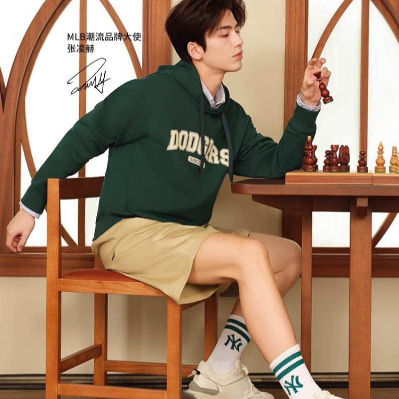 MLB官方 男女情侣几何老花连帽卫衣时尚宽松运动秋季HDM03