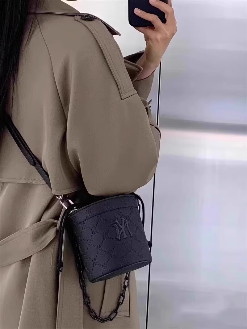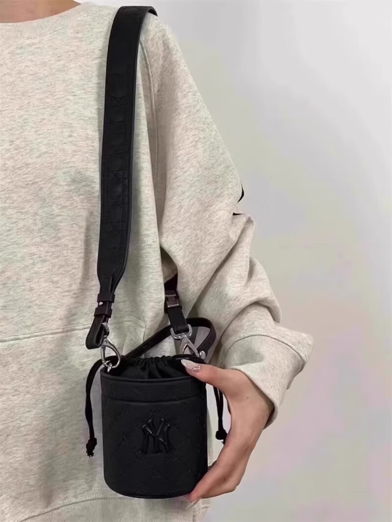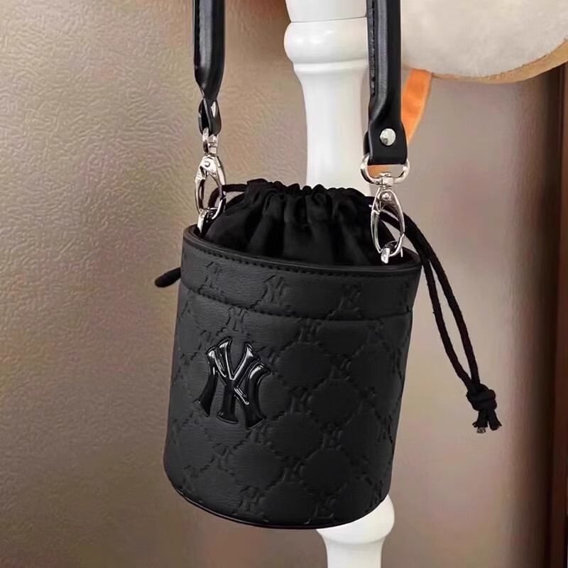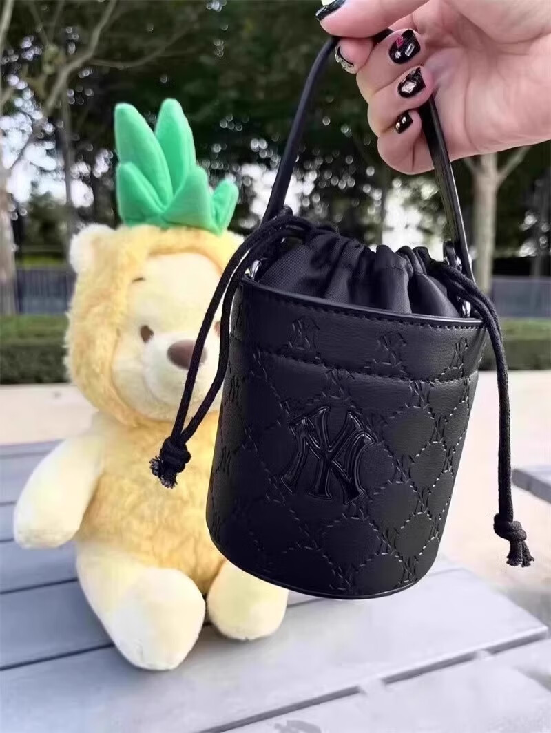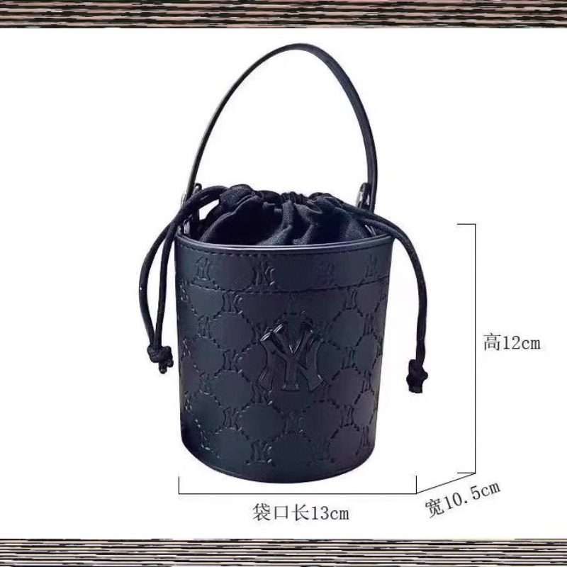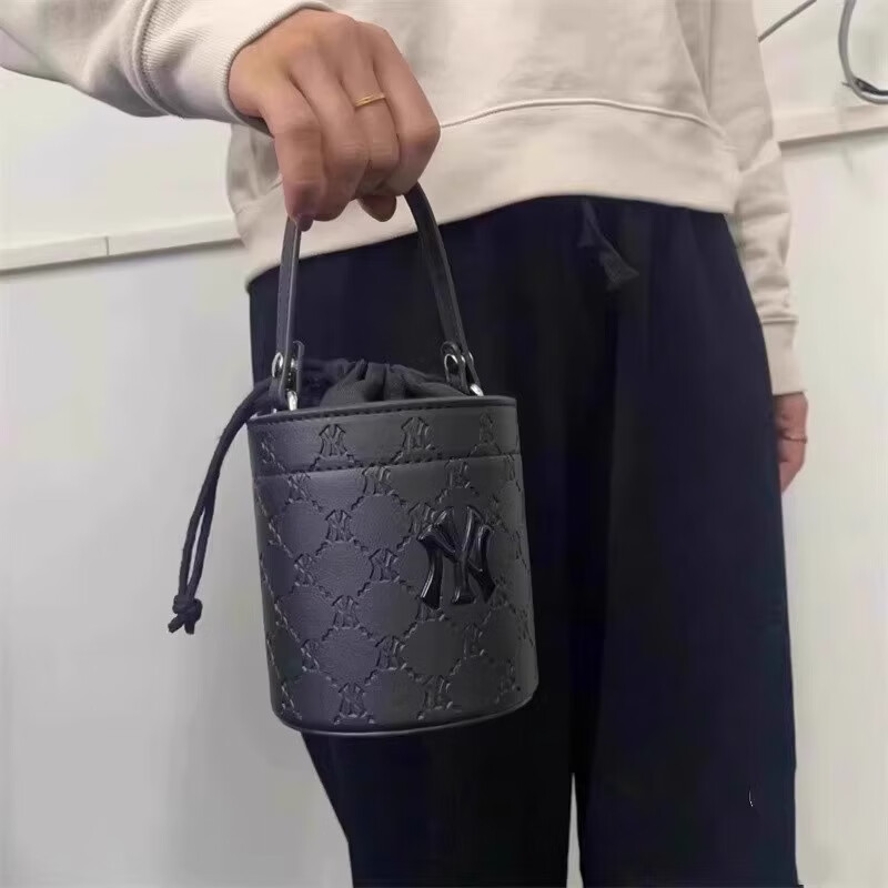MLB水桶包 韩国水桶包女新款洋基队NY香水包复古老花休闲单肩斜挎包 黑色单肩包