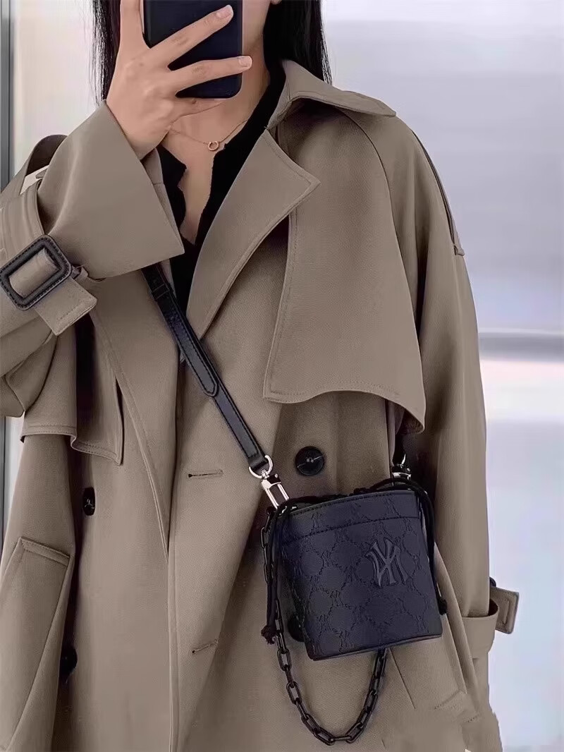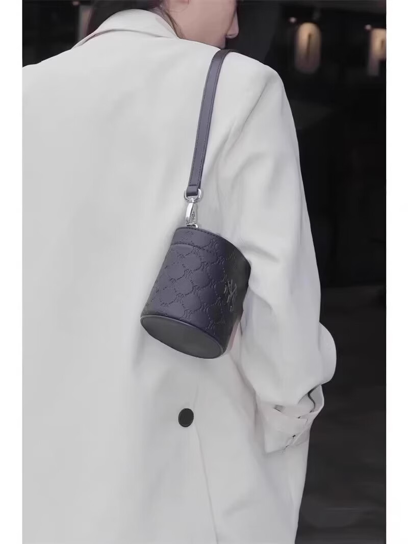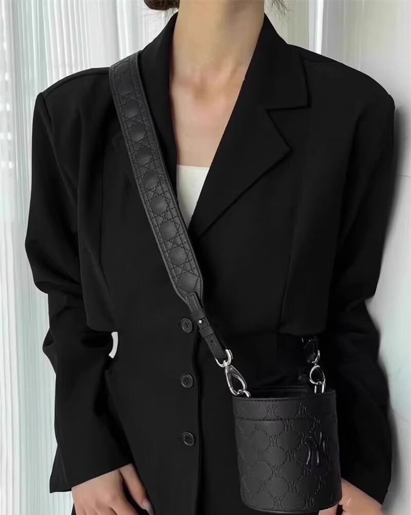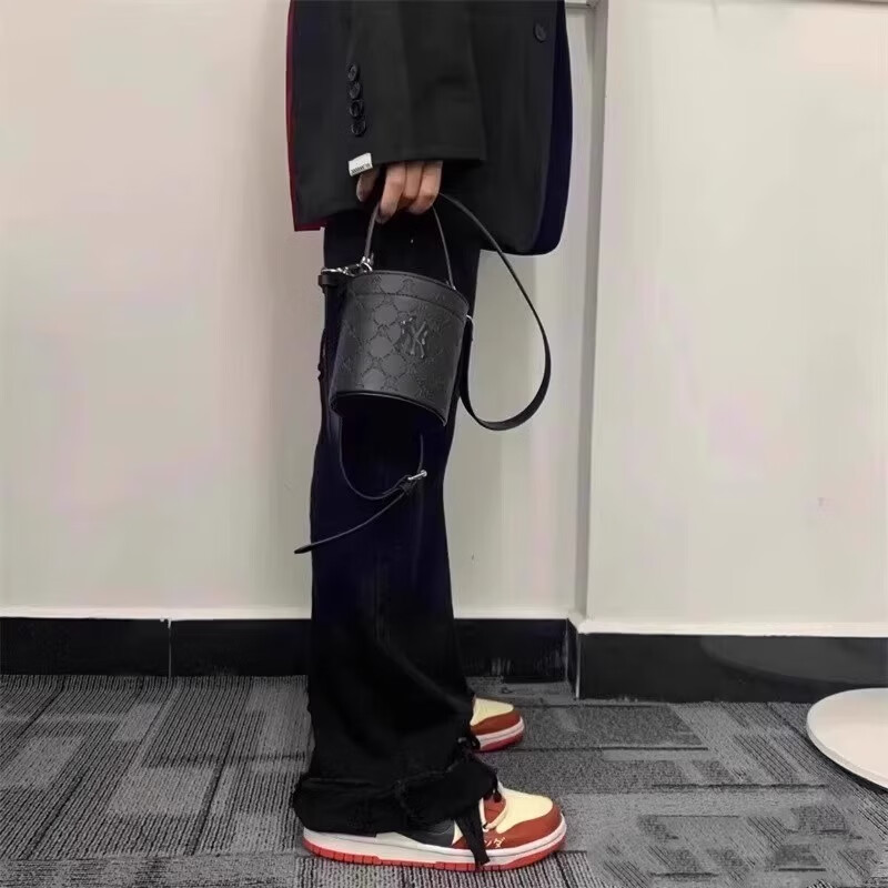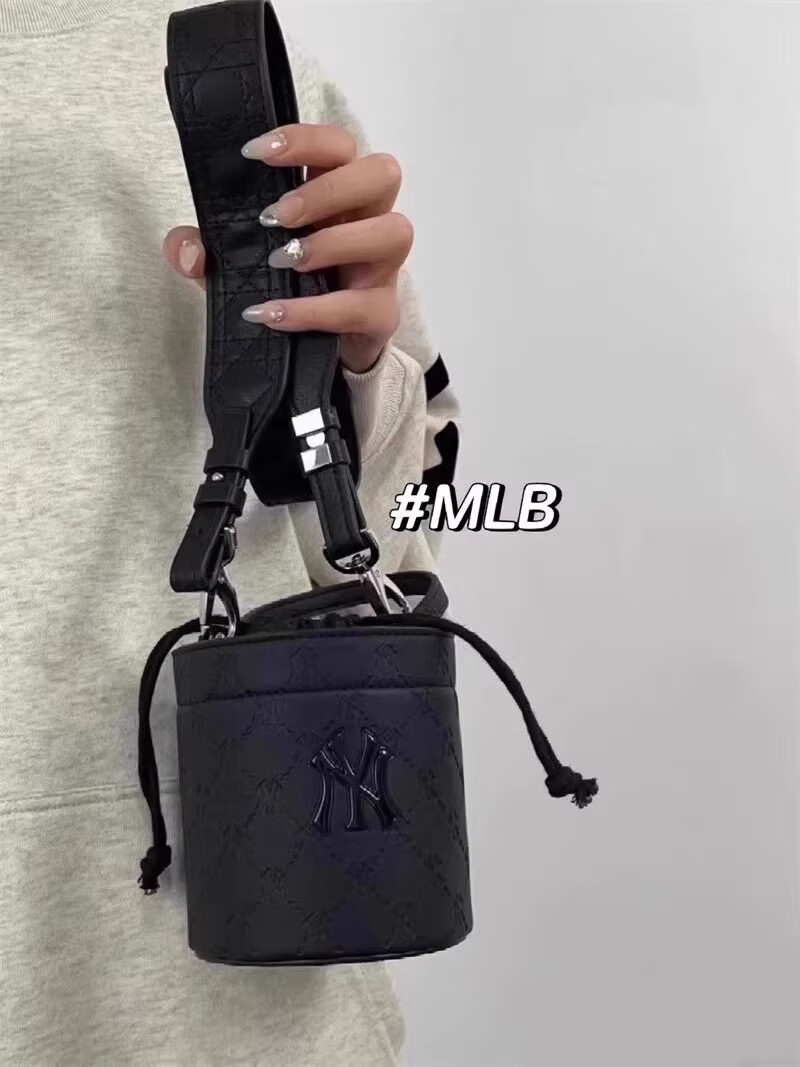 MLB水桶包 韩国水桶包女新款洋基队NY香水包复古老花休闲单肩斜挎包 黑色单肩包