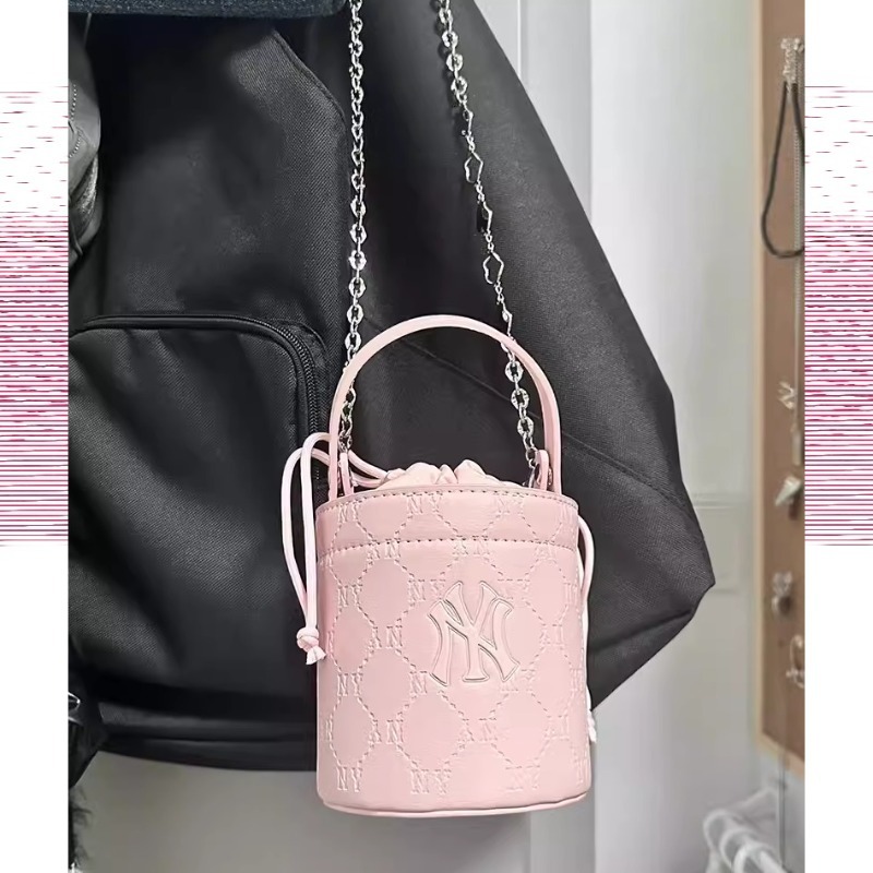 MLB水桶包 韩国水桶包女新款洋基队NY香水包复古老花休闲单肩斜挎包 粉色单肩包