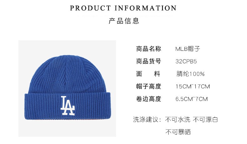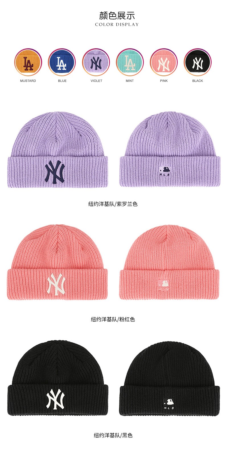 MLB帽子男女百搭保暖毛线帽NY刺绣运动休闲针织帽冷帽秋冬新款3ABNM07成人帽子