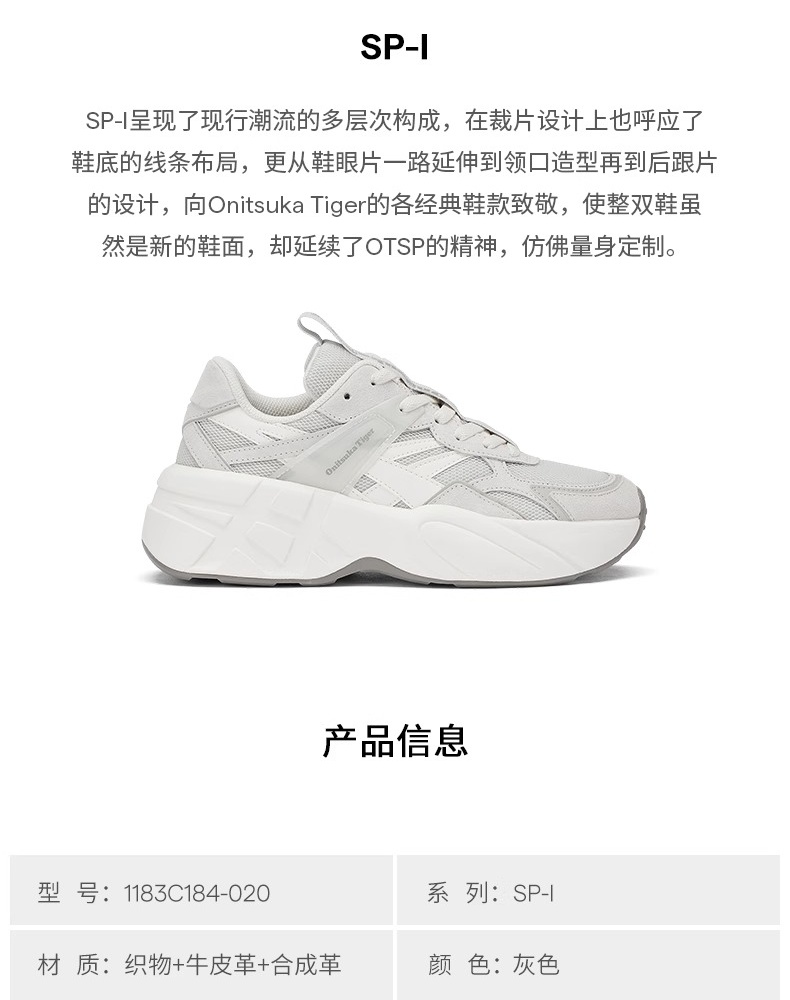 Onitsuka Tiger鬼塚虎SP-I秋季男女鞋灰色运动休闲鞋厚底老爹鞋