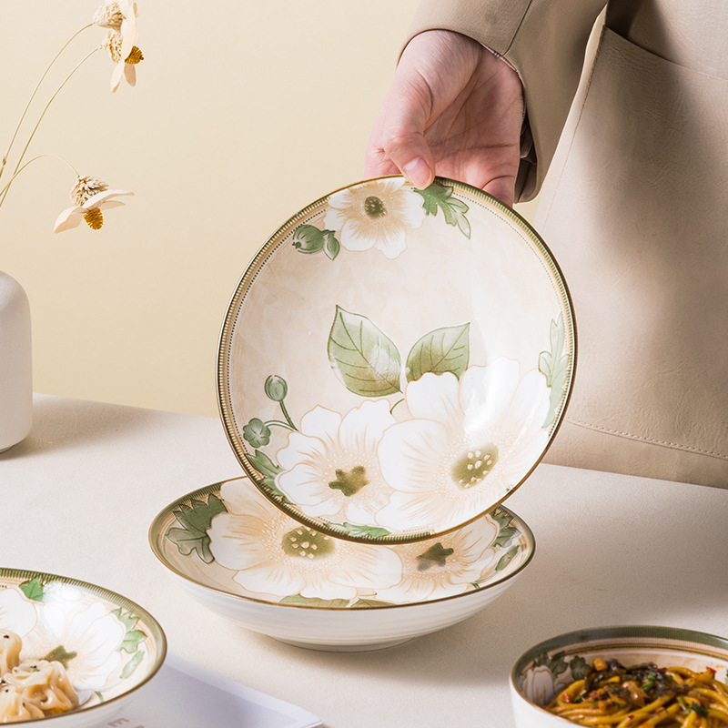 山茶花系列陶瓷碗米饭碗亲子碗组合套装釉下彩网红同款抖音高脚碗